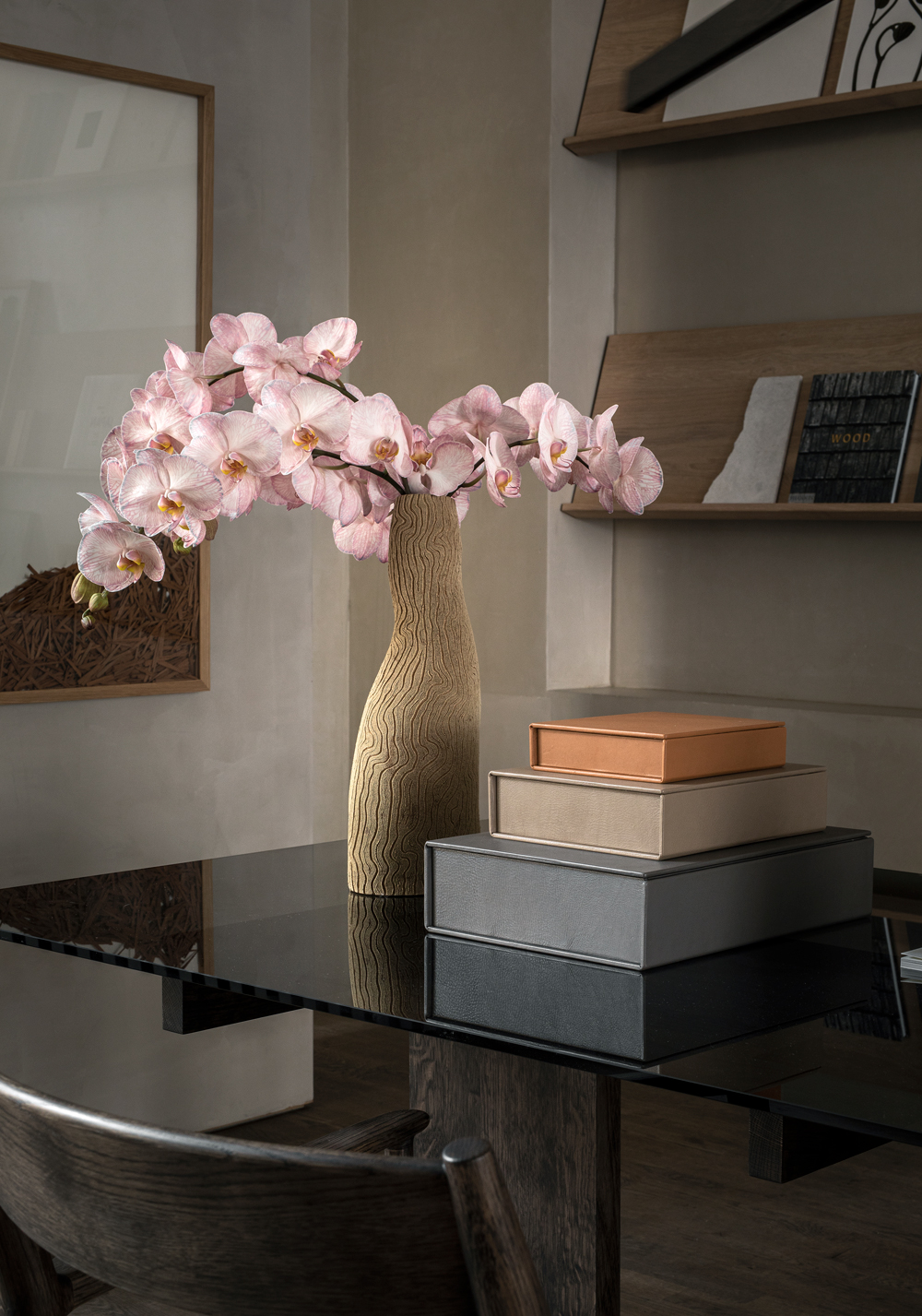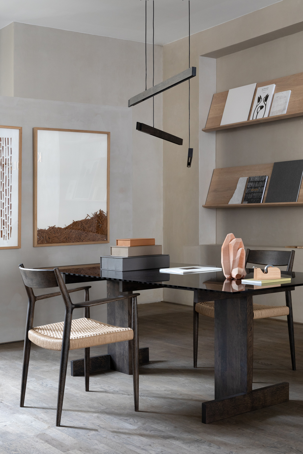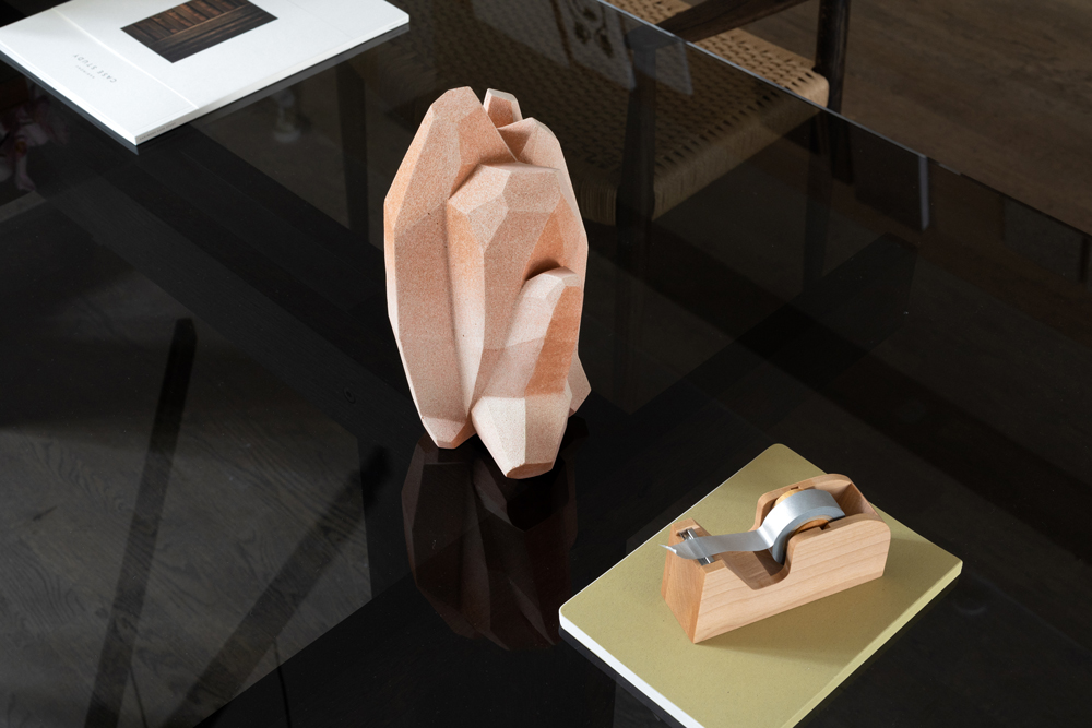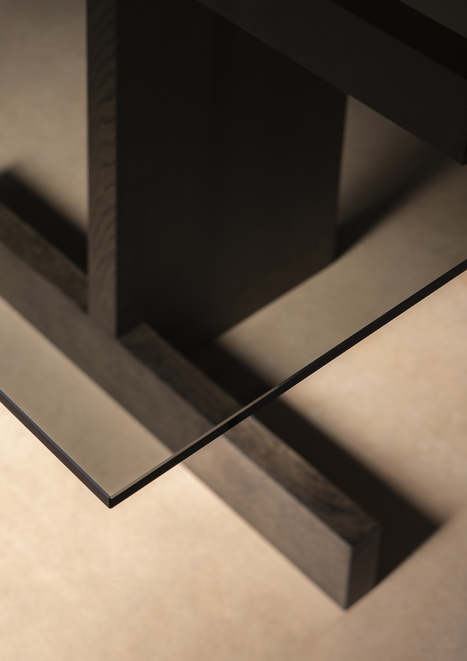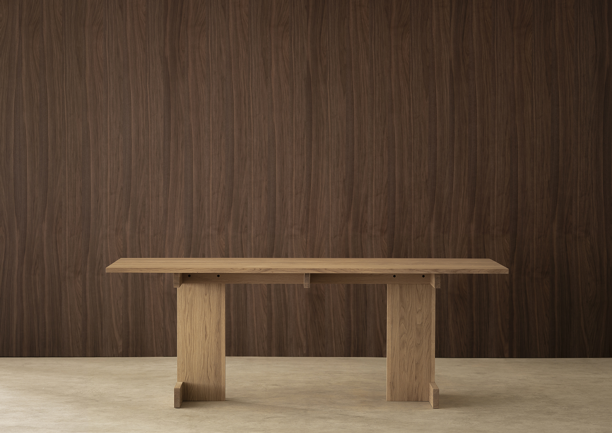 Stół A-DT01 został zainspirowany surowym pięknem i szorstkością wnętrz mieszkań Kinuta przed ich renowacją, geometryczny układ apartamentów znalazł odzwierciedlenie w konstrukcji stołu. Projekt uwydatnia piękno materiału dzięki zwartej formie, eksponowanej przez przezroczysty szklany blat, jednocześnie tworząc ciepłą i relaksującą atmosferę, szczególnie w towarzystwie krzeseł w przestrzeni.