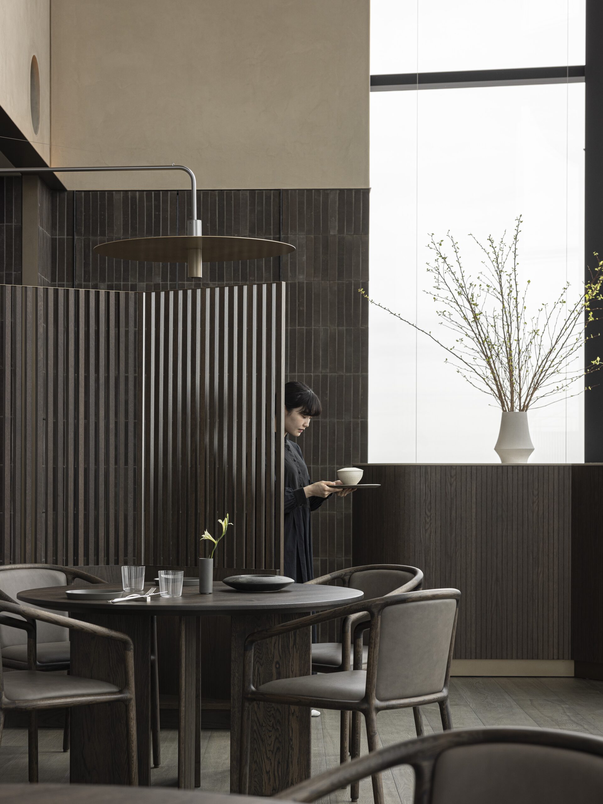 Ten okrągły stół A-DT03 bazuje na projekcie A-DT02 | Dining Table, dostosowanym do europejskiej kultury i potrzeb sektora hospitality. Kształt nóg oraz kąt ich mocowania zostały zaczerpnięte z modelu A-DT02 | Dining Table. Wizualna lekkość, osiągnięta dzięki rezygnacji z oskrzyni, nadaje stołowi uniwersalny charakter, pozwalając na zastosowanie go w wielu przestrzeniach, w tym w obiektach gastronomicznych i hotelowych.