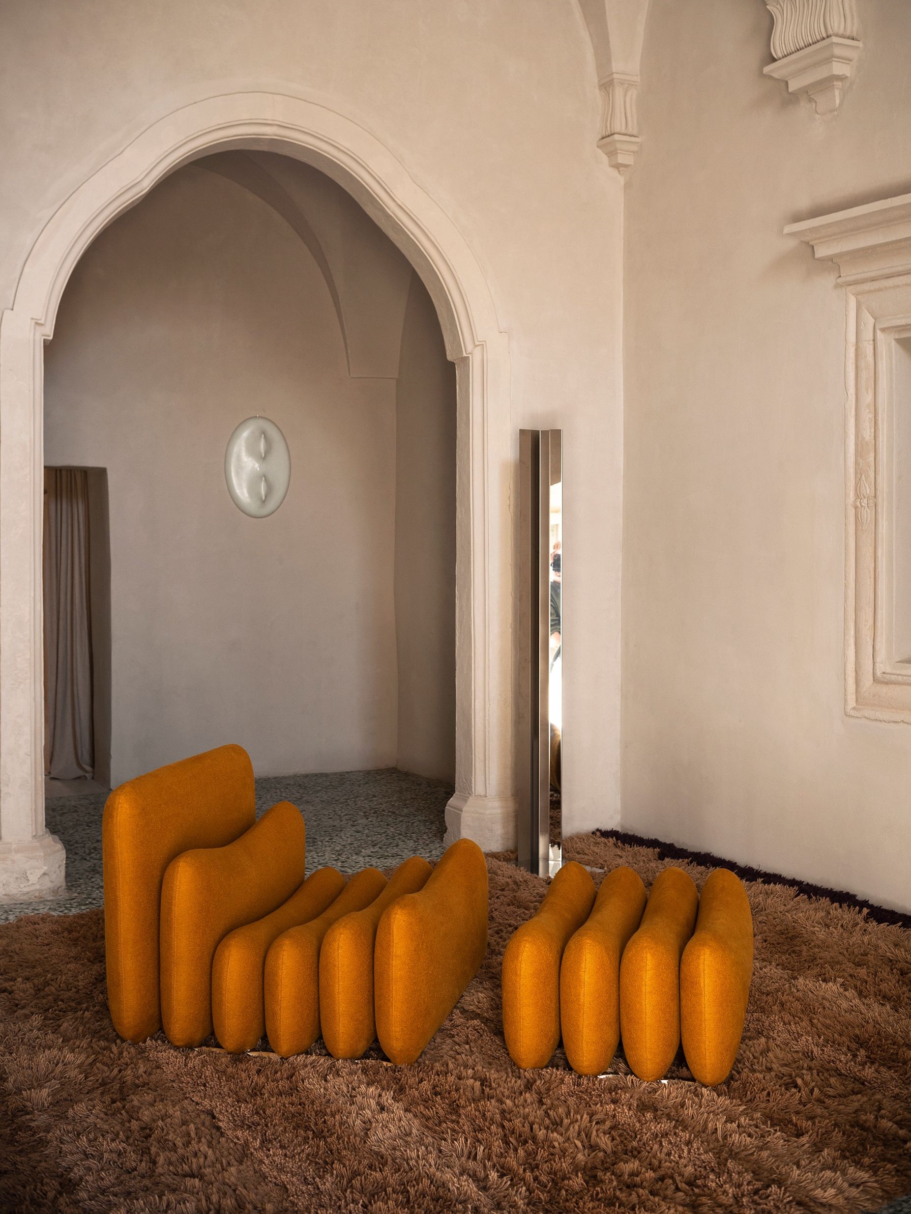 Zaprojektowany przez mistrza Joe Colombo, Additional System jest oferowany przez firmę Tacchini z poszanowaniem pierwotnego, „futurystycznego” ducha. Moduły, które go tworzą, można łączyć w dynamiczne i elastyczne siedziska, które zmieniają się w zależności od pozycji i liczby użytych poduszek. W fotelu większe moduły pełnią funkcję oparcia i delikatnie podpierają siedzisko, a poduszki o różnych rozmiarach zapewniają również lekkie uniesienie nóg. System Additional System uzupełnia puf i leżanka.