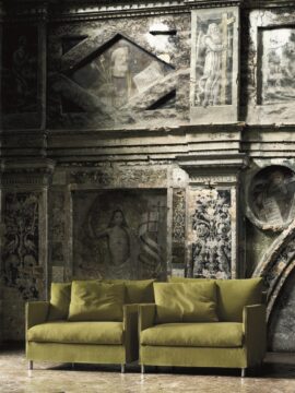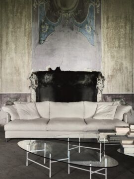 Avalon to łóżko tapicerowane, z satynową ramą ze stali nierdzewnej, o eleganckim wyglądzie złożonym z krętych konturów.