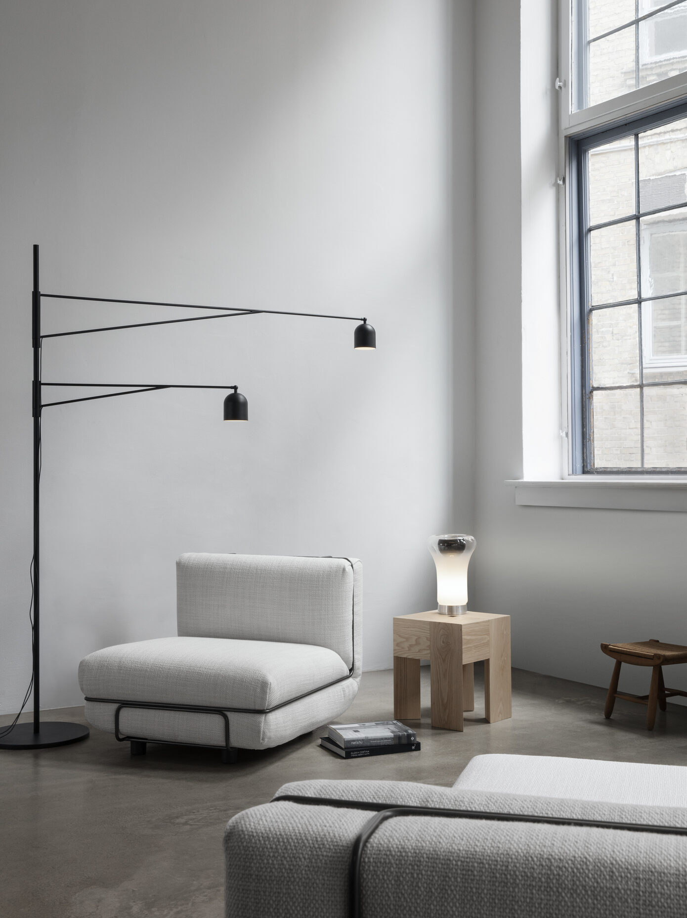 Oryginalna i lekko dziwaczna, Awkward Light to lampa podłogowa o celowo osobliwej anatomii – jej długie, smukłe ramiona oświetlają dwa obszary znajdujące się blisko siebie: dwie strony sofy lub jednocześnie fotel i biurko. W kolekcji Awkward Light występuje również lampa ścienna.