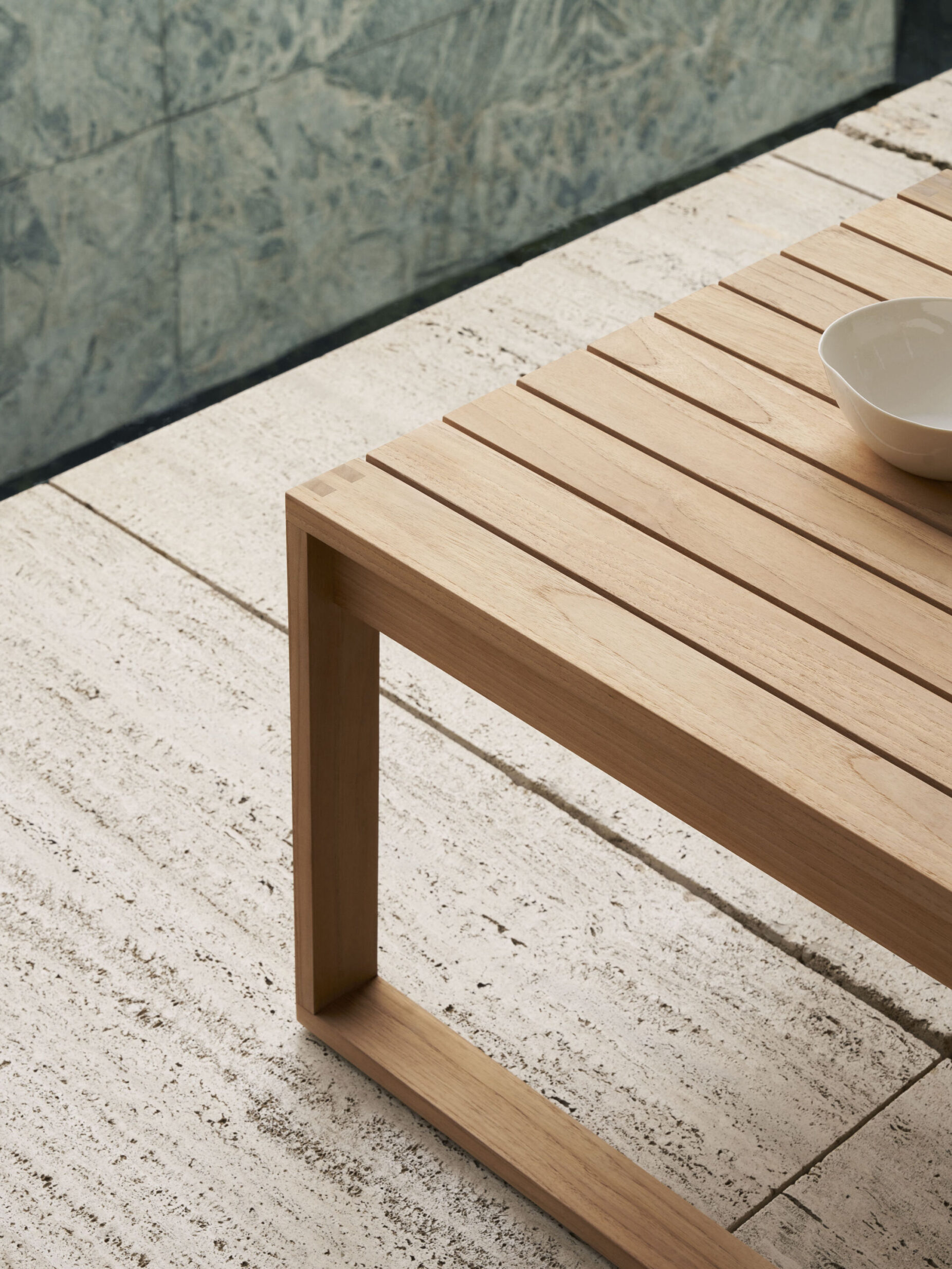 Stolik BK16 został zaprojektowany w 1959 roku przez duńską architektkę i profesor Bodila Kjæra. Będąc częścią kolekcji pięknie wykonanych mebli do wnętrz i na zewnątrz z litego drewna tekowego, jej inspirowana kubizmem forma nawiązuje do innych projektów z tej serii, z których wszystkie mają czyste linie i geometryczną jakość. Stolik boczny BK16, idealnie dopasowany do wysokości fotela z kolekcji, prezentuje ten sam doskonały kunszt i uderzającą prostotę, które leżą u podstaw całej serii Indoor-Outdoor.