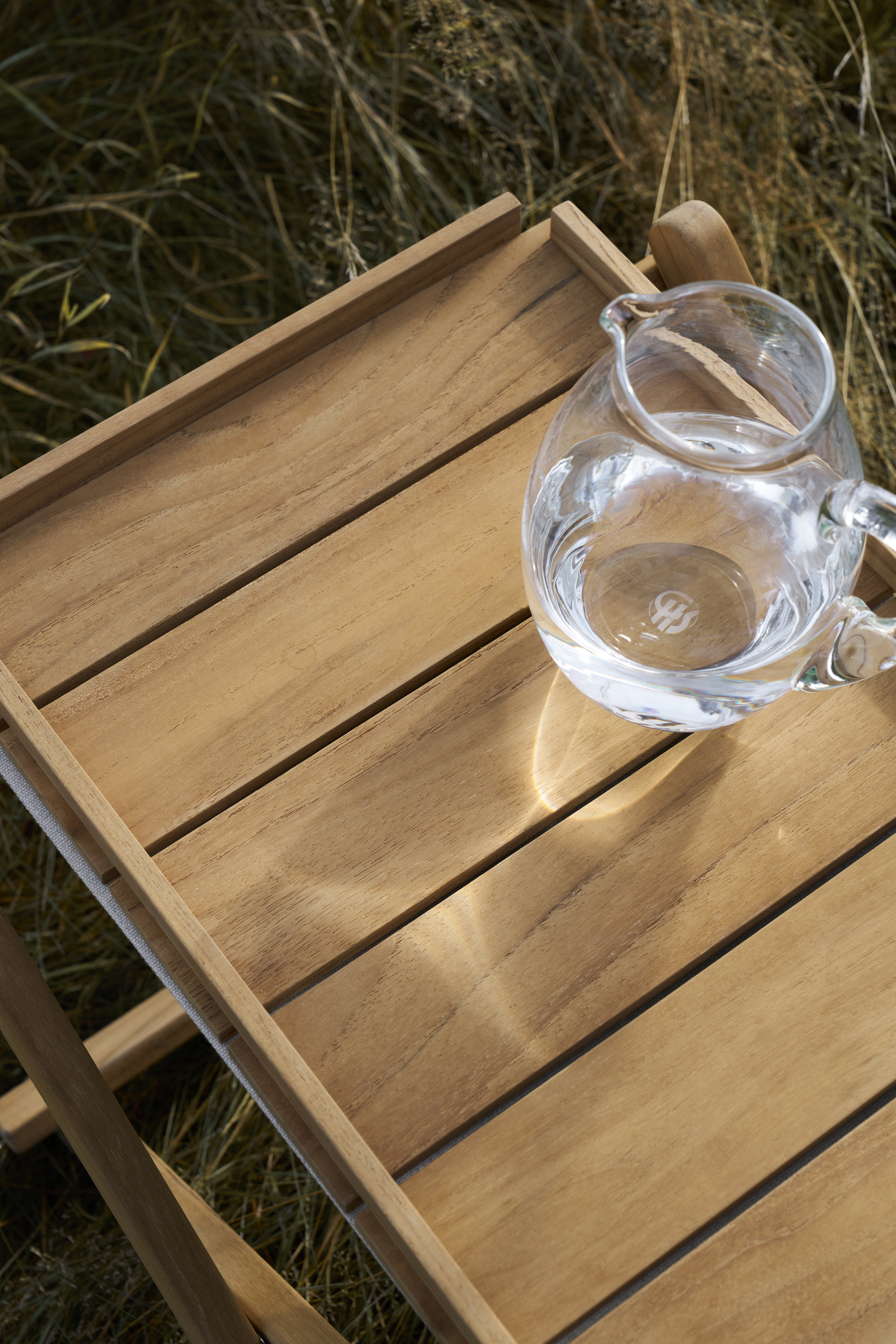 Drewniana taca BM1069 z serii Deck Chair autorstwa Børge Mogensena łączy w sobie wyjątkową funkcjonalność i elastyczność zastosowania. Można ją zestawić z podnóżkiem BM5768, aby stworzyć elegancki stolik ogrodowy. Złączki są zawsze wykonane z wysokiej jakości stali nierdzewnej, co zapewnia ich trwałość i odporność na korozję. Meble zostały zaprojektowane jako składane, dzięki czemu są praktyczne i wygodne w użytkowaniu oraz przechowywaniu.