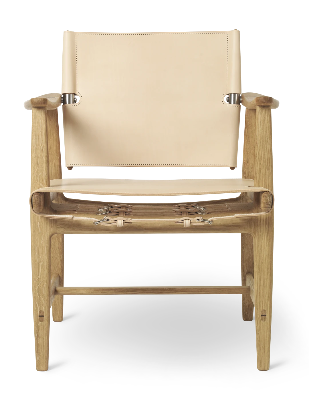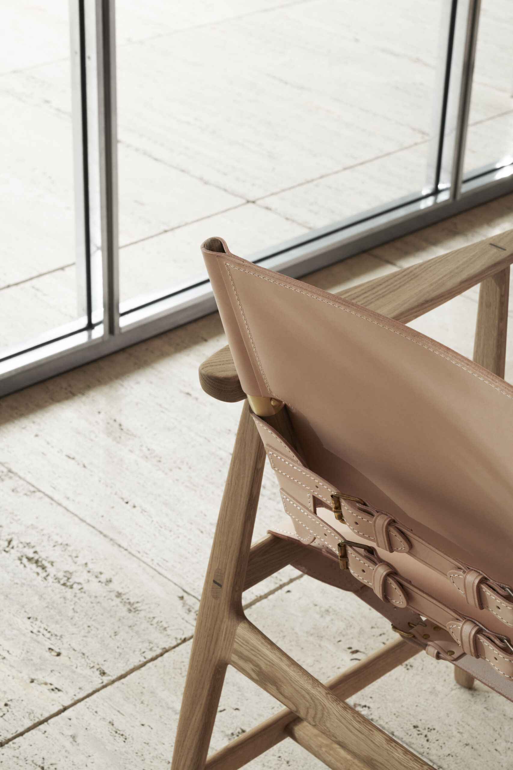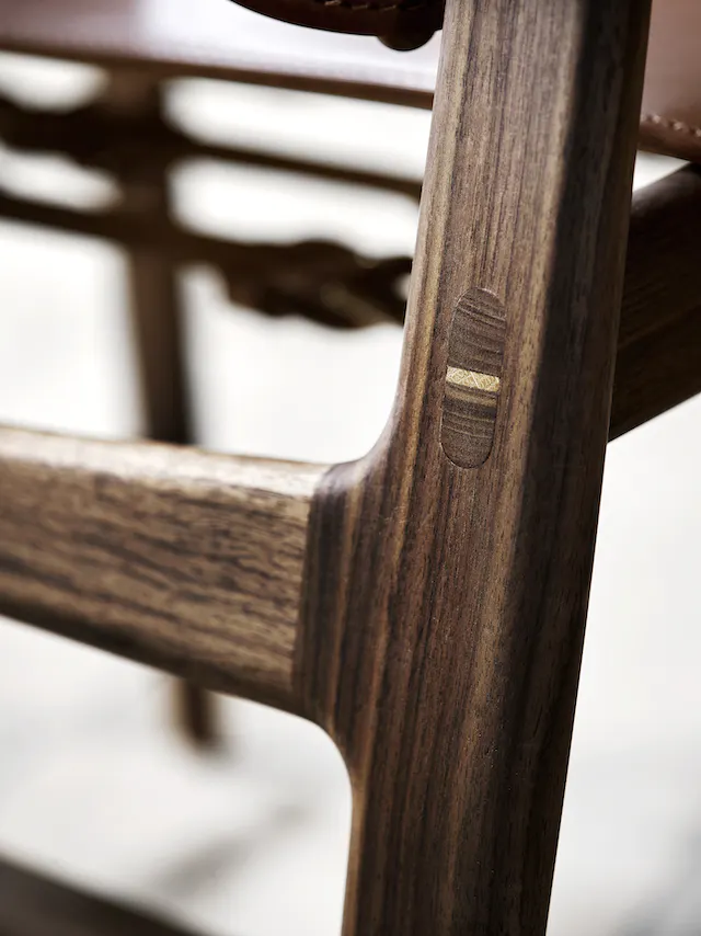 Krzesło łączy w sobie dwa różne style projektowania: prostotę i złożoność, co daje czysty projekt z unikalnymi detalami. Surowe wzornictwo, prezentujące elegancję, pozwala, aby naturalne i wysokiej jakości materiały mówiły same za siebie: luksusowa skóra siodła jest napięta za pomocą sprzączek i wsporników ze stali lub mosiądzu i kontrastuje z ramą z litego drewna. Konstrukcja zapewnia elastyczne i wygodne krzesło, które pozwala na różne pozycje siedzenia.