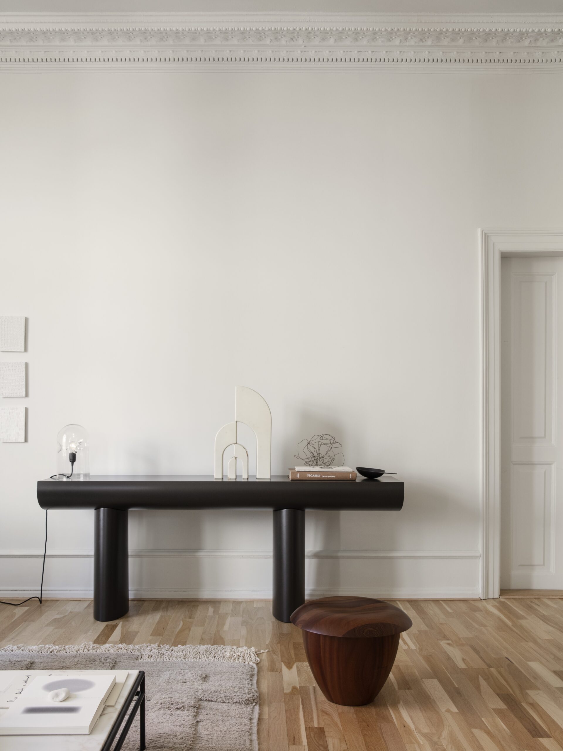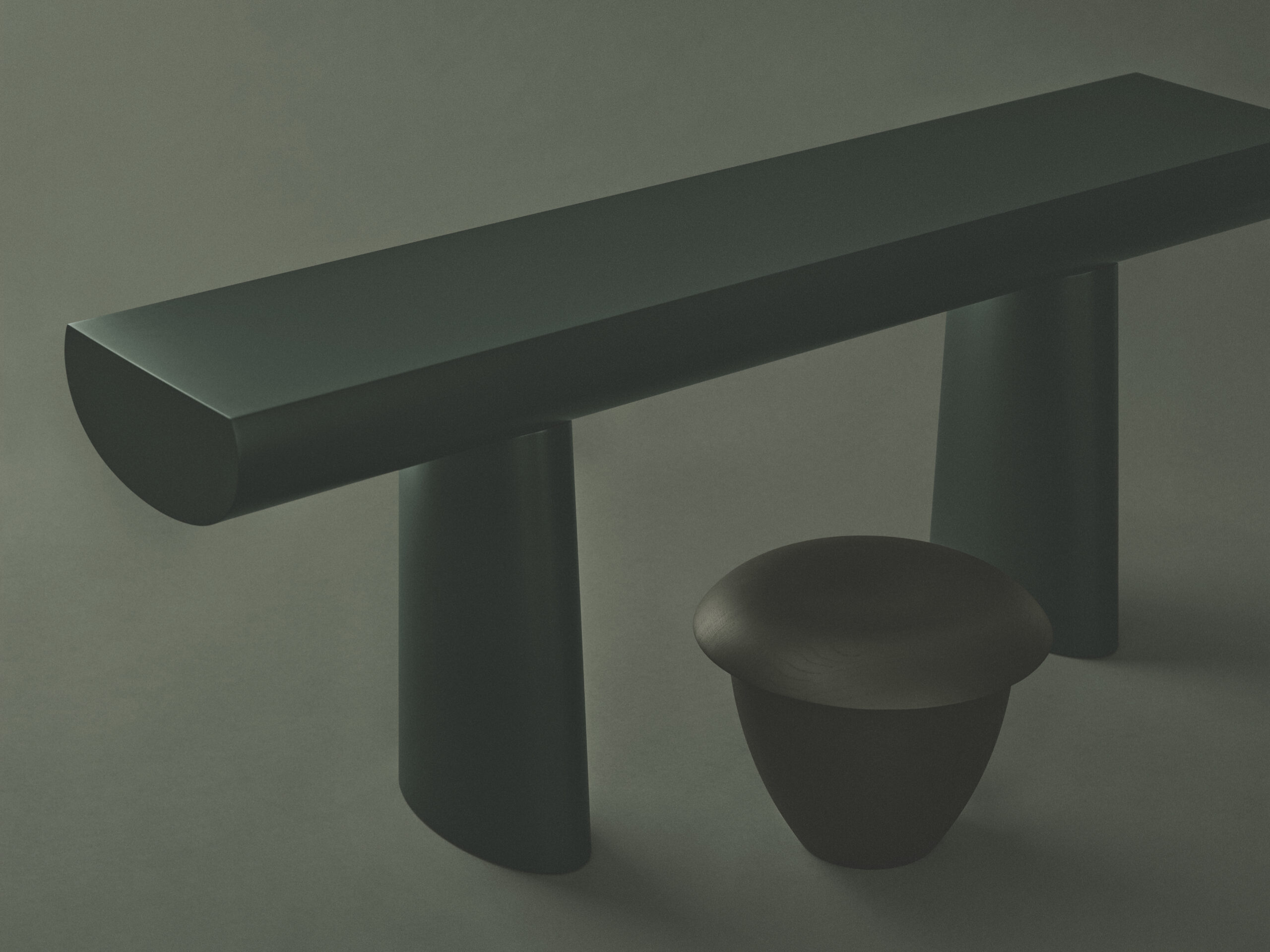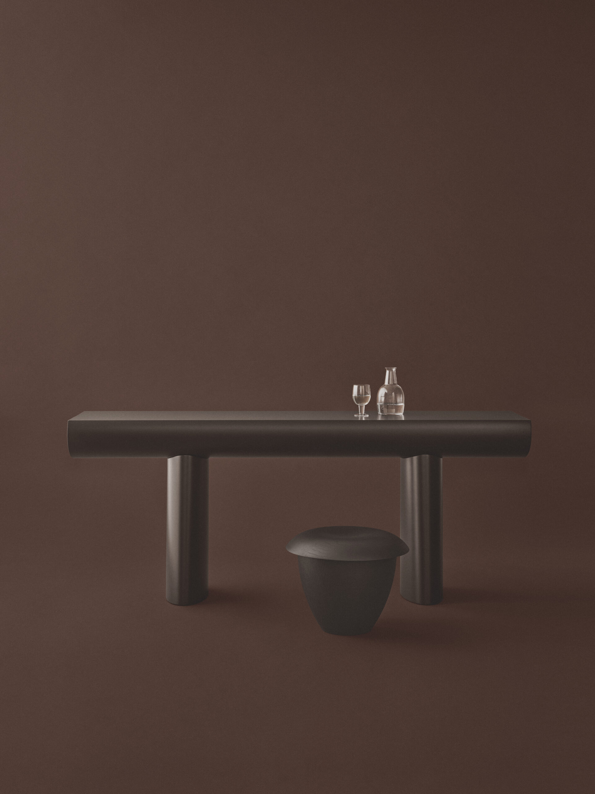 Odświeżona wersja cudownego Pink Stool Aldo Bakkera, wykonana w lakierze urushi w 2015 roku, Bon emanuje doskonałym poczuciem spokojnej formy i materialności Bakkera. Ten rzeźbiarski stołek składa się z dwóch sprzecznych kształtów połączonych ze sobą: pionowego i głębokiego kształtu oraz płaskiego, poziomego, który definiuje siedzenie.