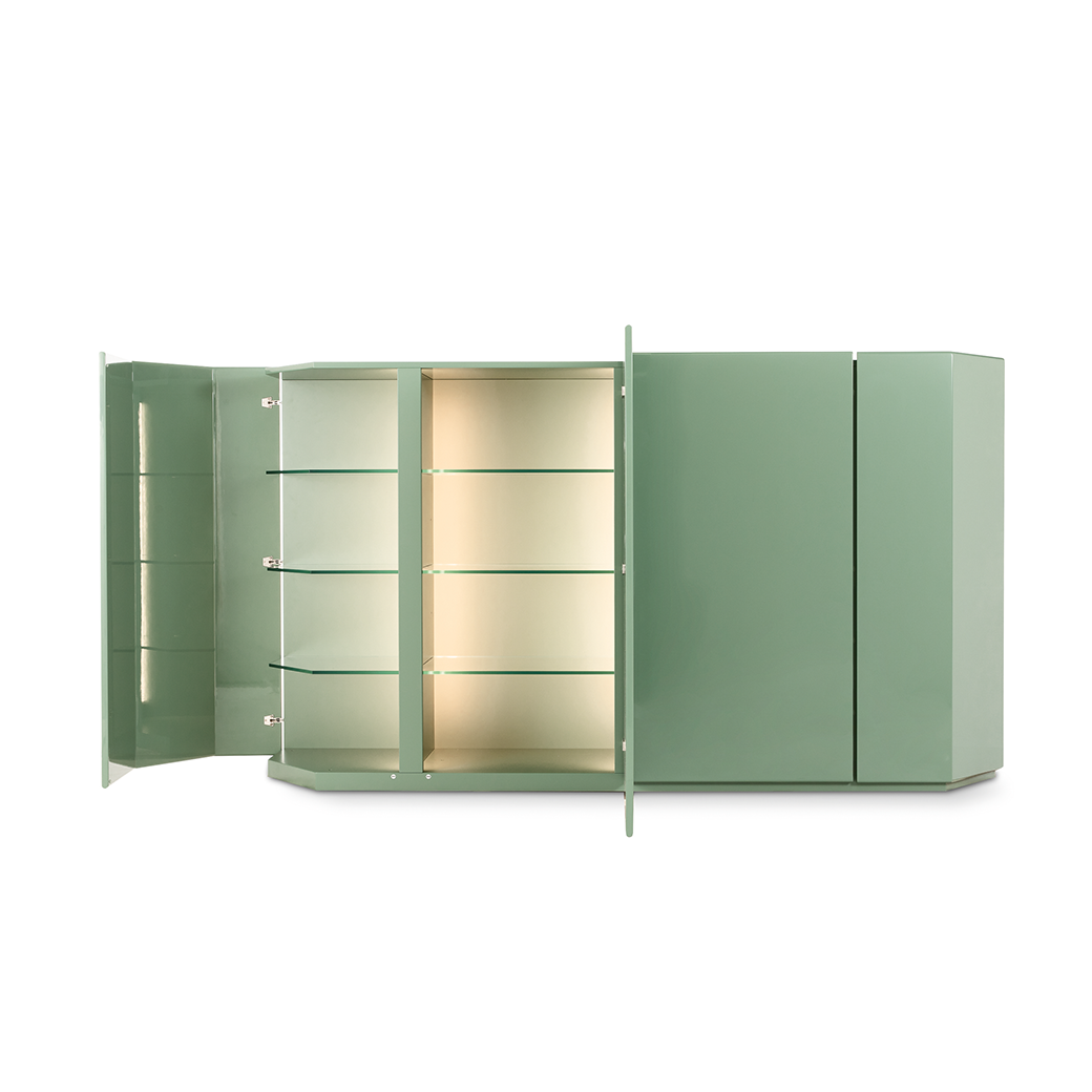 Designerska szafka do przechowywania, symbol nowoczesnej, ponadczasowej klasyki z eleganckimi, uporządkowanymi liniami, na których japoński architekt Takahama projektuje głęboki związek z przeszłością, przywołując starożytną sztukę lakierowania. Szczególnie podziwiany za swój architektoniczny charakter i wszechstronność zastosowania w różnych ustawieniach, Bramante to lakierowany mebel, który dzięki swoim czystym, geometrycznym kształtom ujawnia całe swoje rzemieślnicze wyrafinowanie. Szafka do przechowywania została ponownie zinterpretowana ze współczesnym akcentem poprzez wyeliminowanie modułów, dodanie szklanych półek i zainstalowanie wewnętrznego systemu LED