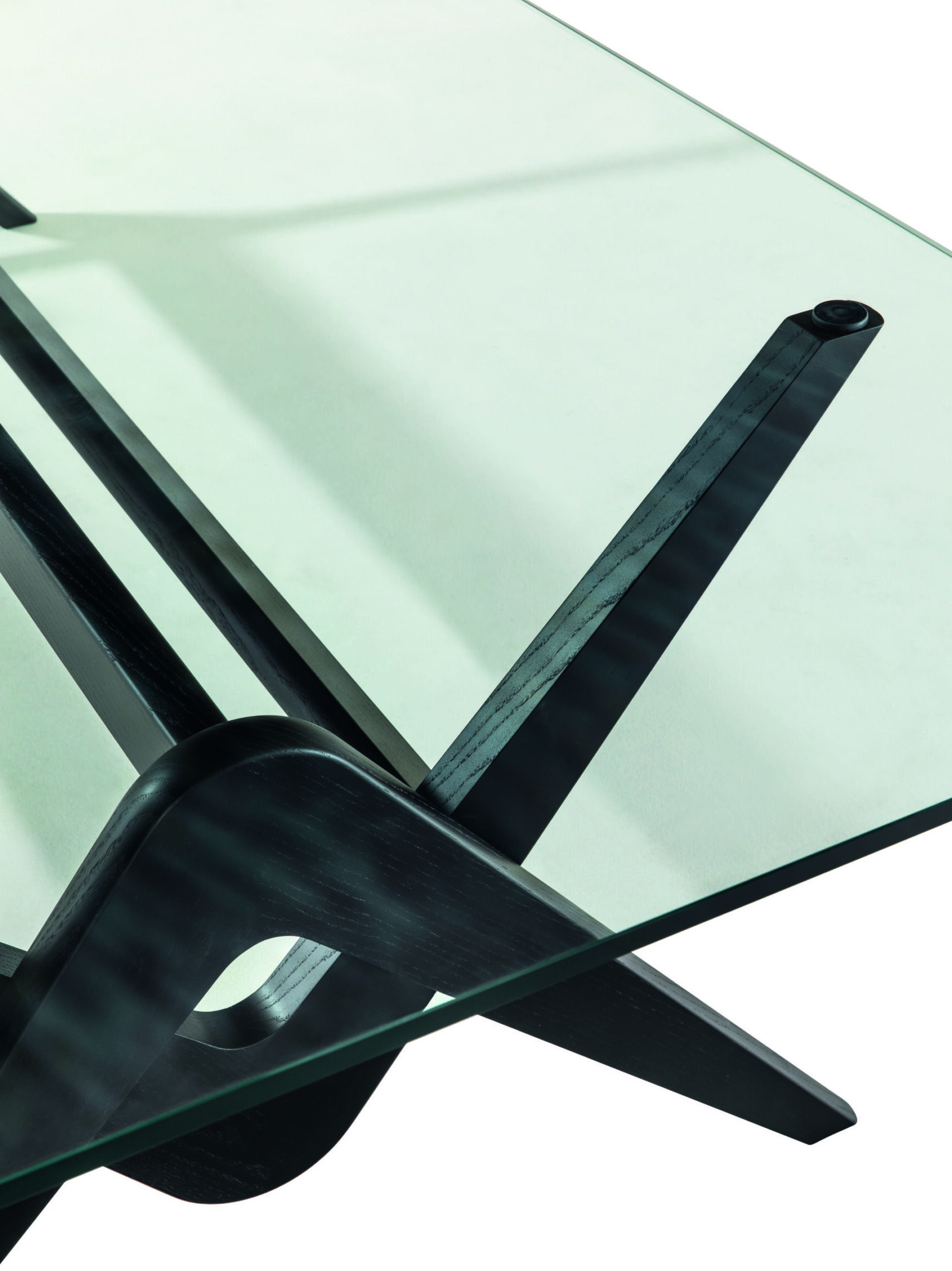 Pierwotnie przeznaczony do wyposażenia budynku Zgromadzenia Ustawodawczego w Chandigarh, ten stół ze szkła i litego drewna, będący hołdem dla Pierre’a Jeannereta, został ponownie zinterpretowany przez firmę Cassina dzięki umiejętnemu wykonaniu jej znakomitych mistrzów stolarki w Meda. Podobnie jak wiele dzieł w kompleksie architektonicznym zaprojektowanym przez Le Corbusiera w 1951 roku – obecnie wpisanym na Listę Światowego Dziedzictwa UNESCO – również ten prostokątny stół wskazuje na istotną rolę, jaką Pierre Jeanneret odegrał w projektowaniu wyposażenia wnętrz wraz z Le Corbusierem i Charlotte Perriand. Capitol Complex Table odzwierciedla głębokie związki autora z tym obszarem i wynikającą z tego preferencję do projektowania minimalistycznych kształtów wykonanych z prostych materiałów. Stąd stół wykonany w całości z litego drewna, którego podstawę tworzą dwa elementy graficzne o charakterystycznym kształcie litery „V”.