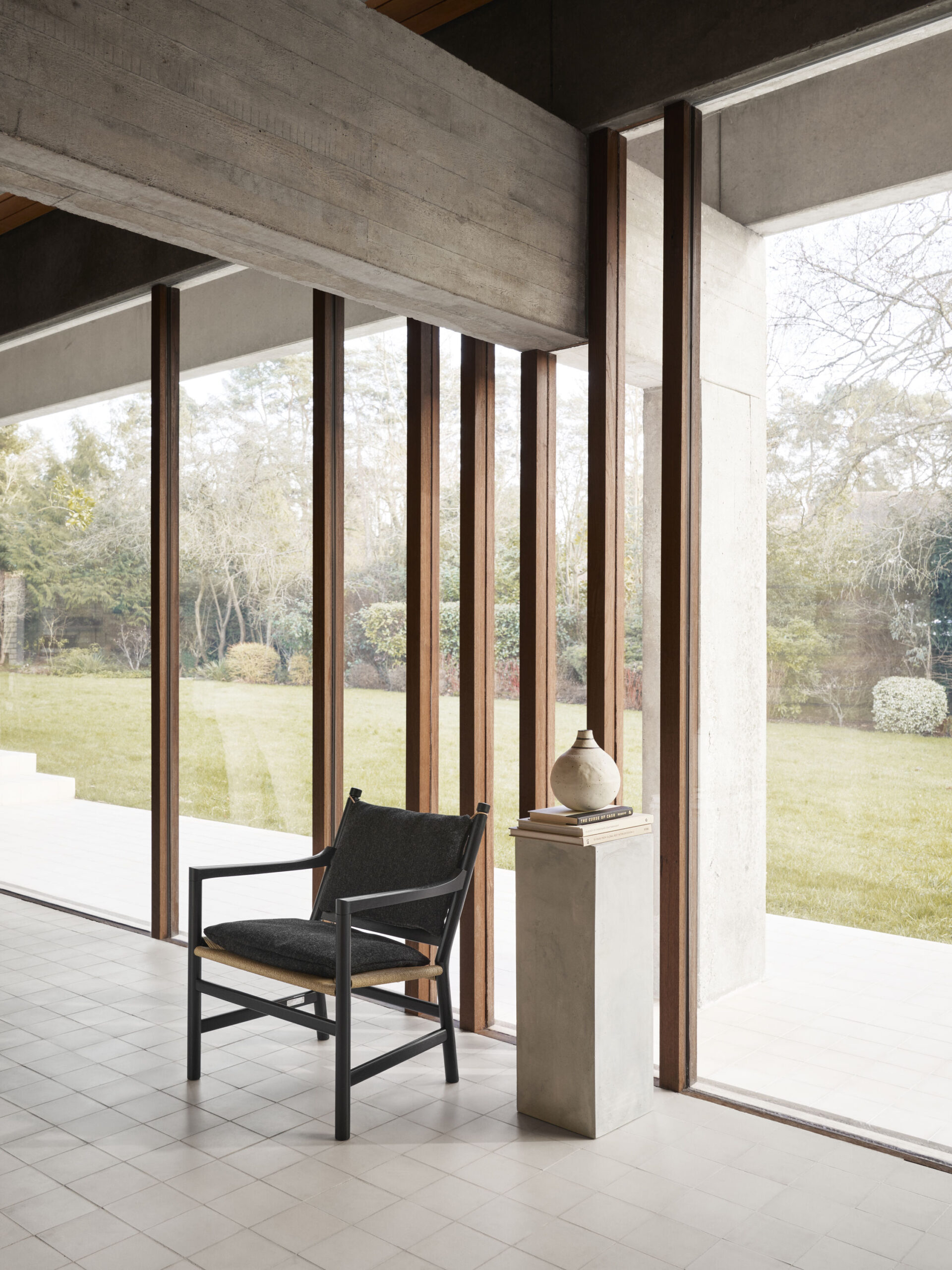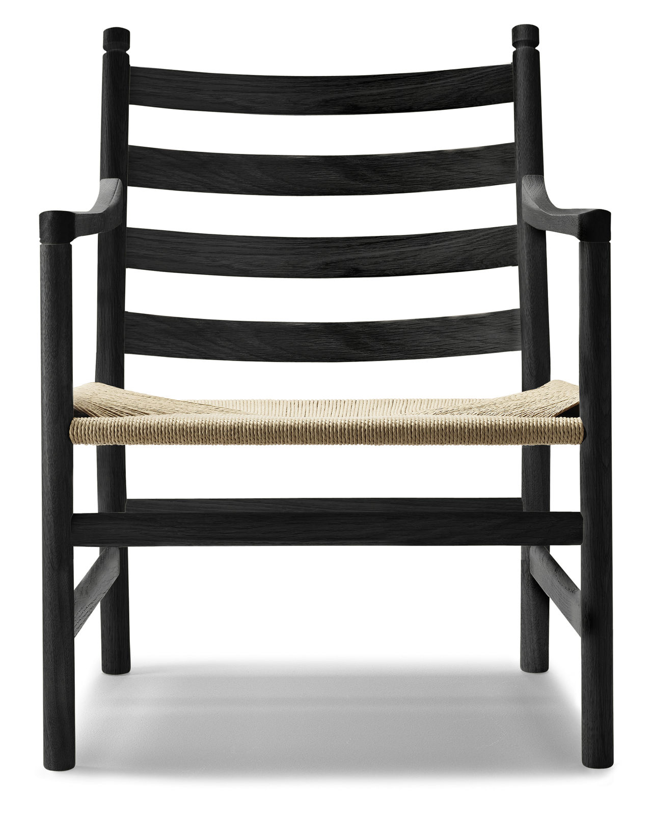Fotel CH44 z 1965 roku autorstwa Hansa J. Wegnera to prostota doprowadzona do perfekcji. Krzesło ma zarówno charakterystyczne dla Wegnera, zdefiniowane połączenia między przednimi nogami i podłokietnikami, jak i rowki na górze tylnych nóg, na których można zawiesić poduszkę oparcia. Podłokietniki pochylają się w górę w kierunku tylnych nóg, stając się bardziej smukłe w miarę podnoszenia, w ten sposób elegancko wzmacniając pionowe połączenie. Ogólny efekt wydaje się uderzający, a wynik jest wygodny.
