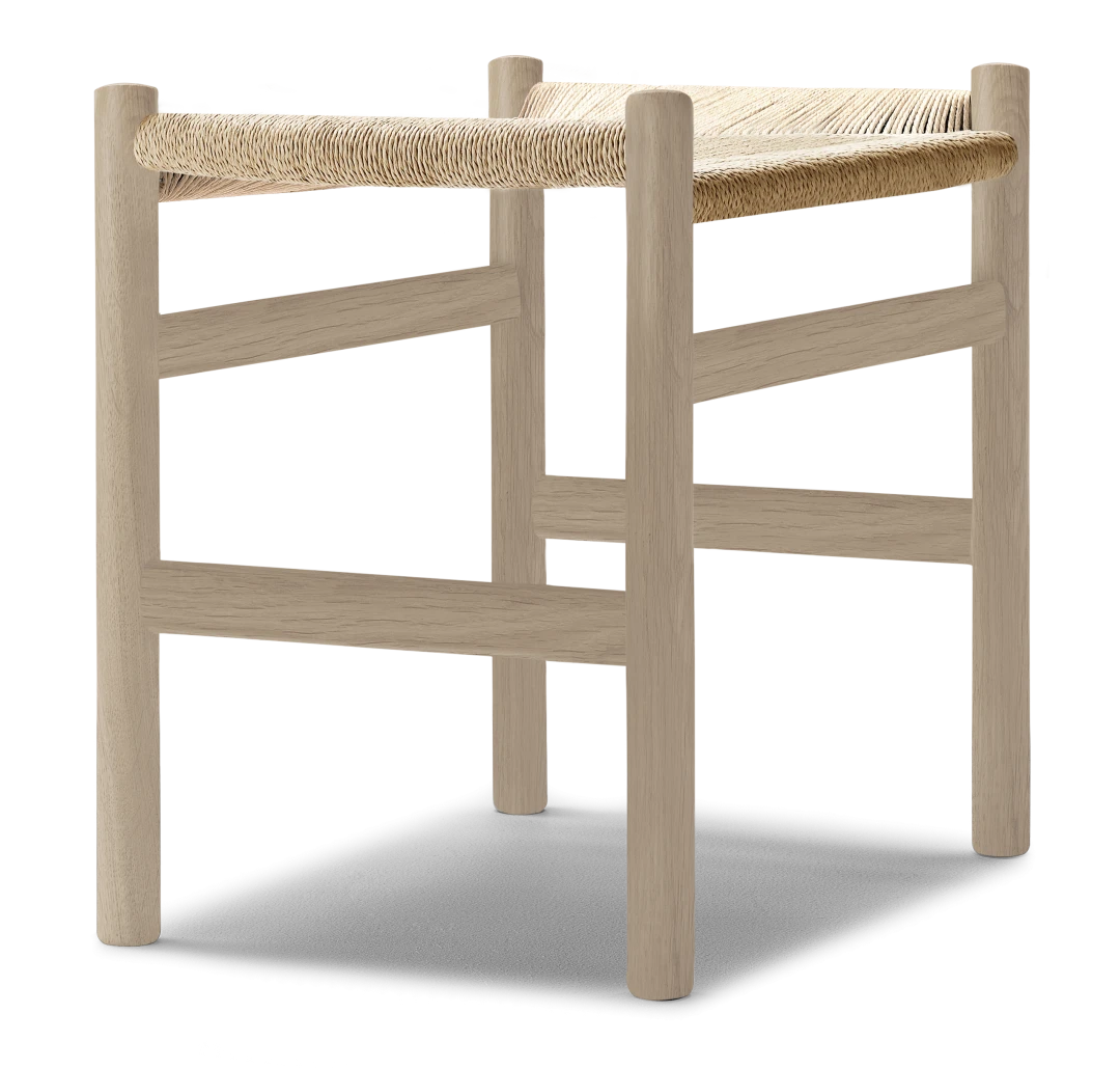 Hans J. Wegner stworzył podnóżek CH53 w 1966 roku, który wyraźnie pokazuje jego pasję zarówno do rzemiosła, jak i codziennej funkcjonalności. Prosta i elegancka forma podnóżka, dzięki ramie z litego drewna i siedzisku z ręcznie plecionego sznurka papierowego, stanowi idealne uzupełnienie fotela CH44, ale sama w sobie jest również elegancka w przedpokoju, sypialni lub kuchni. Podnóżek CH53 dostępny jest w dwóch wysokościach, a wersja niska stanowi uzupełnienie modelu CH44.