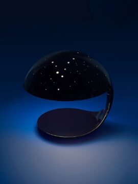 Lampa stołowa Cobra została zaprojektowana na bazie kuli. Ruch obrotowy reflektora wokół centralnego przegubu nieustannie nadaje nowe sfery i pozycje zatrzymania światła. Wijący się, dynamiczny i zwinny kształt, jak kobra, która kołysze się zahipnotyzowana muzyką, ale gotowa do skoku. Lampa stworzona jest z jednego materiału – żywicy termoutwardzalnej, oraz jest dostępna w trzech kolorach: białym, czarnym lub czerwonym.