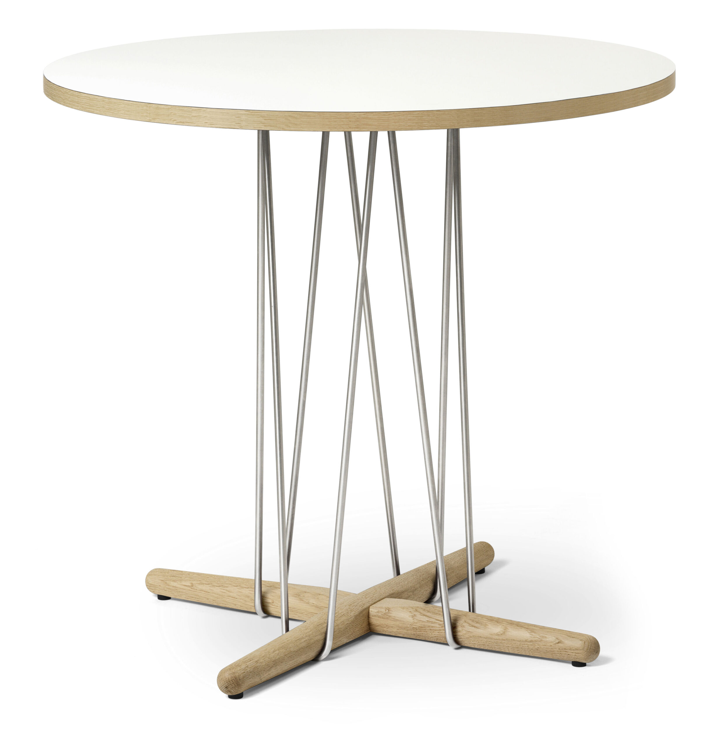 Zaprojektowany przez austriackie trio EOOS dla Carl Hansen & Søn, stół Embrace E020 to stylowa reinterpretacja podstawowego wyposażenia mebli, stworzona w ramach inteligentnej serii Embrace. Wykonany z trzech elementów projekt ma drewnianą podstawę, konstrukcję z drutu stalowego i okrągły blat. Rezultatem jest charakterystyczna, rzeźbiarska ekspresja inspirowana latawcem powiewającym na wietrze; z nogami stołowymi, które zostały przesunięte do środka, aby zmaksymalizować przestrzeń na nogi, mebel zapewnia optymalną funkcjonalność.
