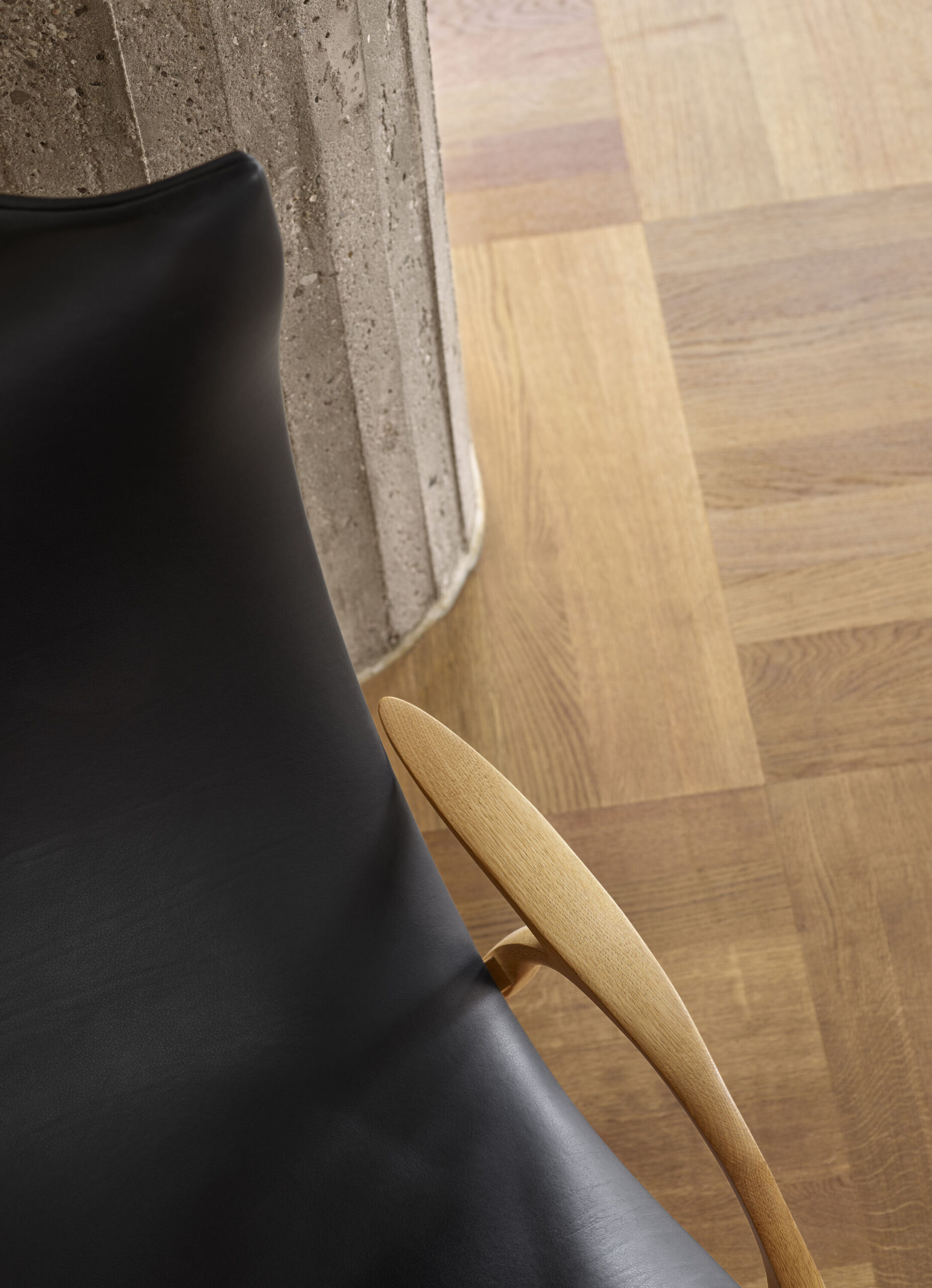Tapicerka podkreśla miękkość formy i wysoki komfort użytkowania, natomiast precyzyjnie wykonana, drewniana konstrukcja świadczy o mistrzostwie rzemieślniczym Henningsena. Proporcje są dopracowane w najdrobniejszych detalach, dzięki czemu fotel jest zarówno wygodny, jak i wizualnie lekki.