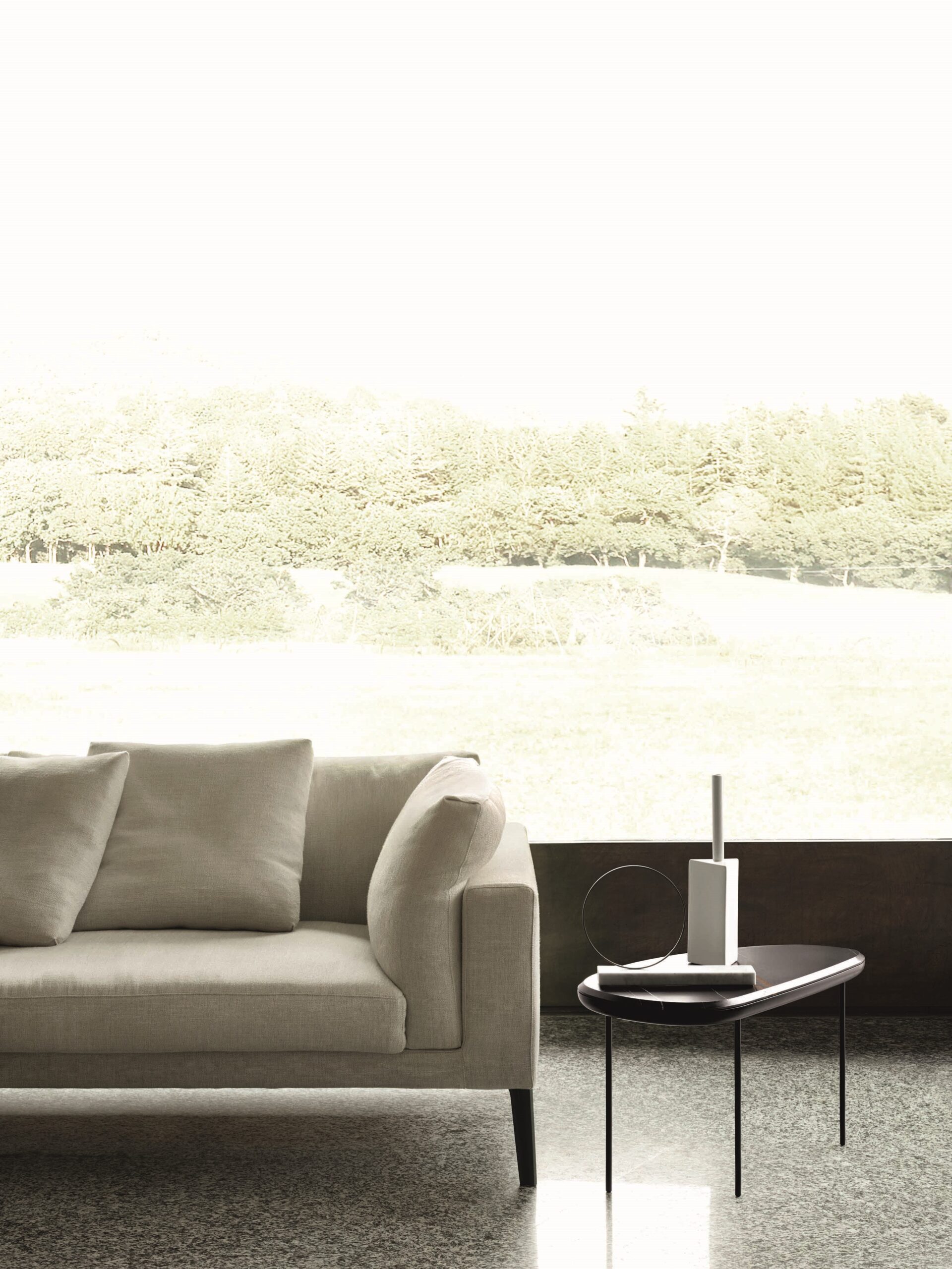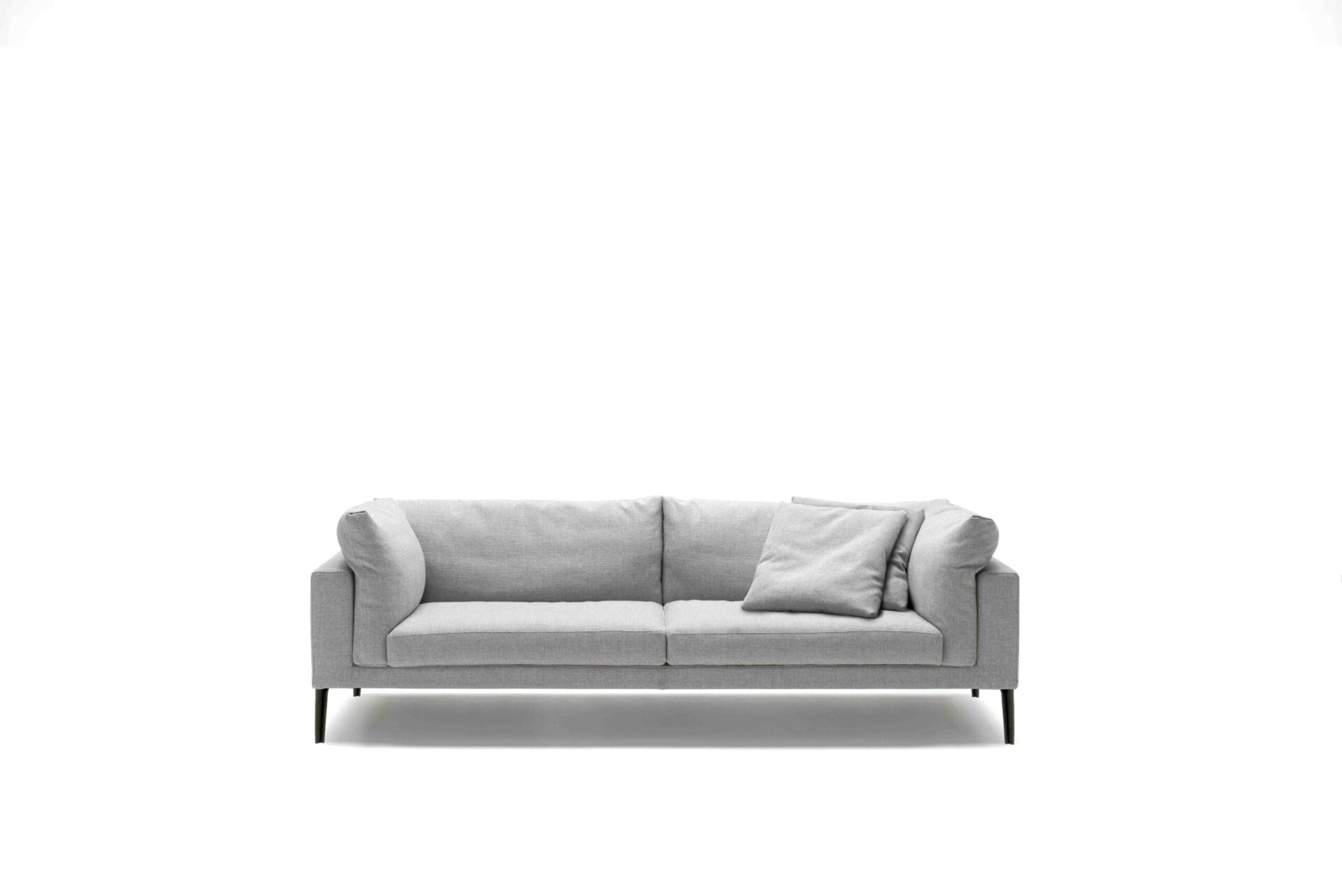 Szczególne cechy poduszek podłokietników i oparcia umieszczonych między konstrukcją a siedziskiem charakteryzują sofę Floyd-Hi 2, teraz dostępną w nowej wersji z pionowymi pojedynczymi nóżkami.