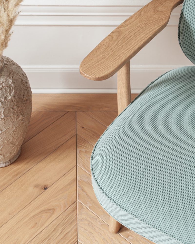 Elegancki pod każdym względem fotel wypoczynkowe Fred™ to ukłon w stronę spokojnego i wygodnego życia. Zaprojektowane przez Jamiego Hayona krzesło ma niską, otwartą sylwetkę i rzeźbioną drewnianą ramę, starannie zmontowaną ręcznie. Szerokie, płaskie podłokietniki i pionowe siedziska wspierają plecy i ramiona — idealne rozwiązanie na długie spotkania towarzyskie lub czytanie.