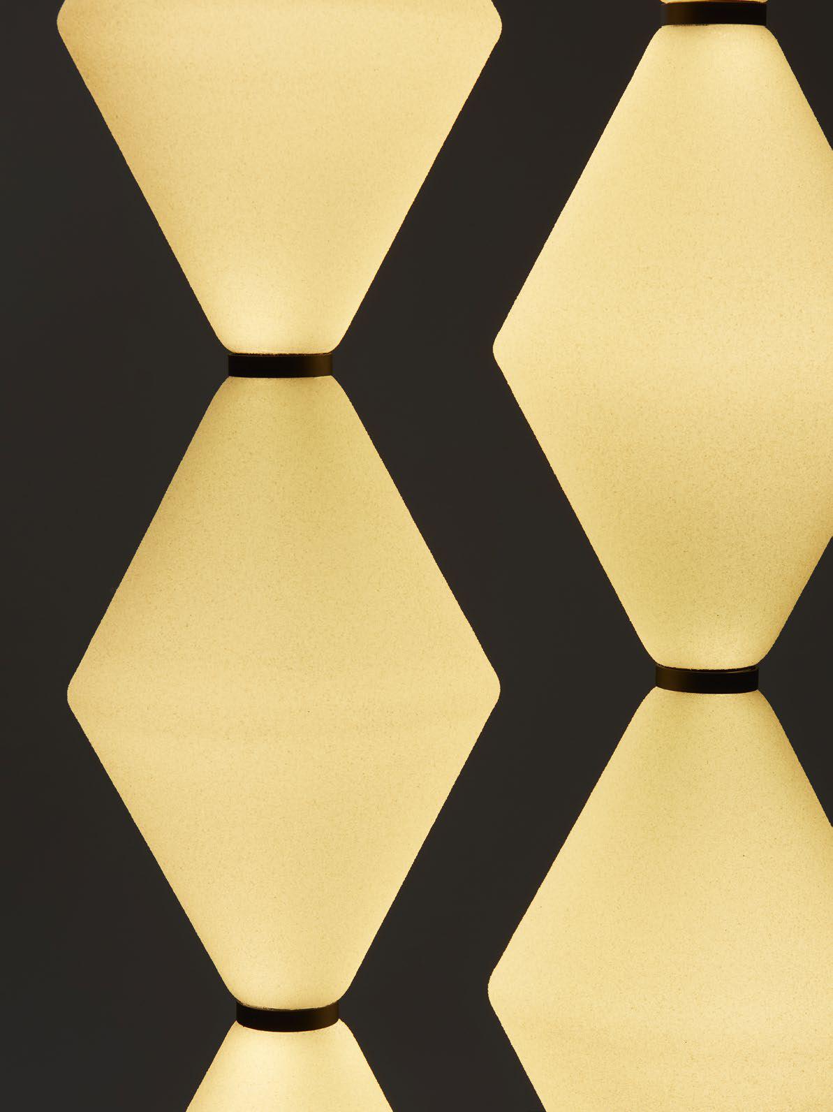 Helium to modułowa lampa zaprojektowana przez Elisę Ossino dla marki De Padova, pełniąca funkcję świetlnej rzeźby. Przypomina serię geometrycznych kształtów o płynnym rytmie, który nawiązuje do możliwości nieskończonej ekspansji.