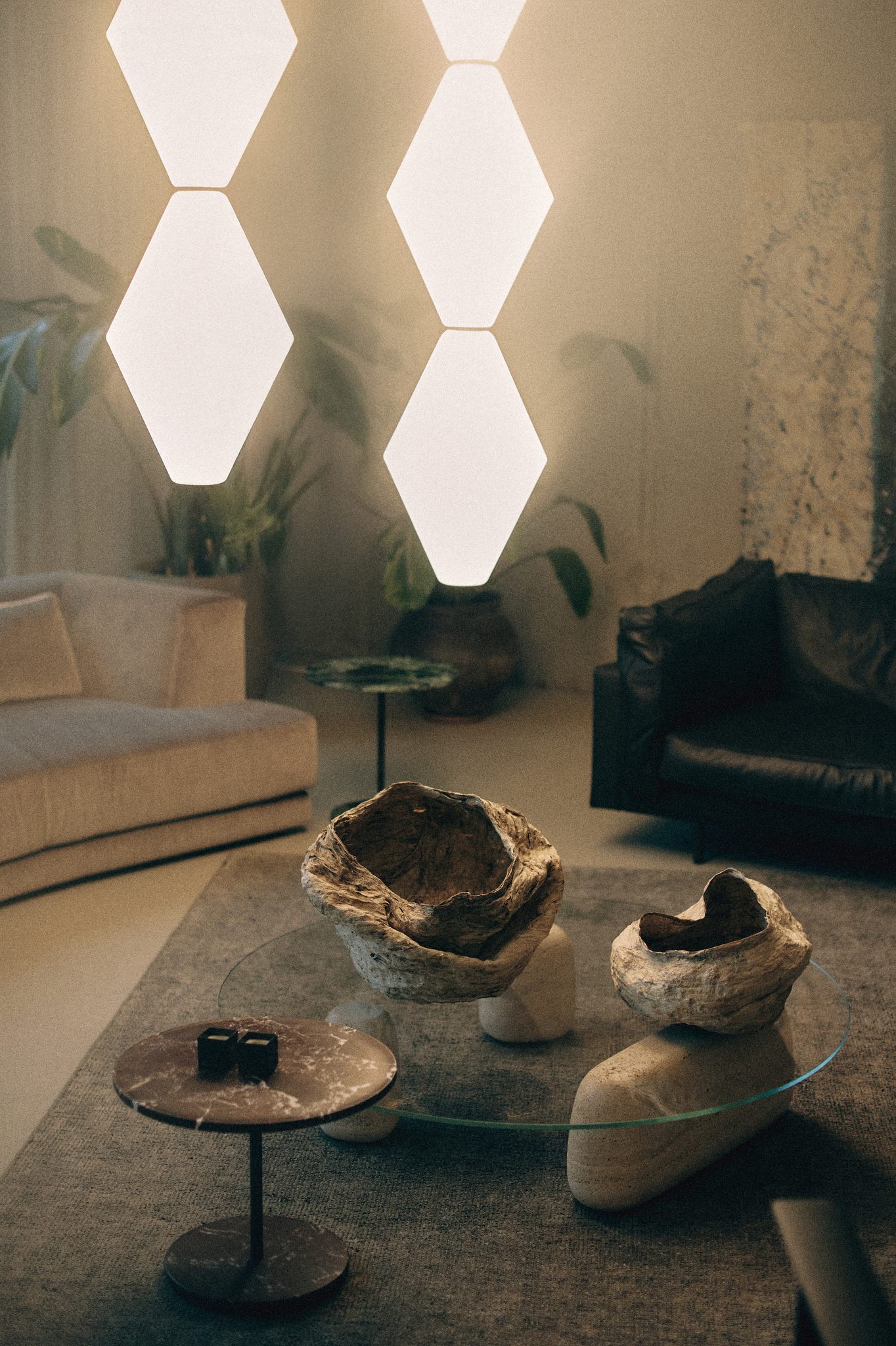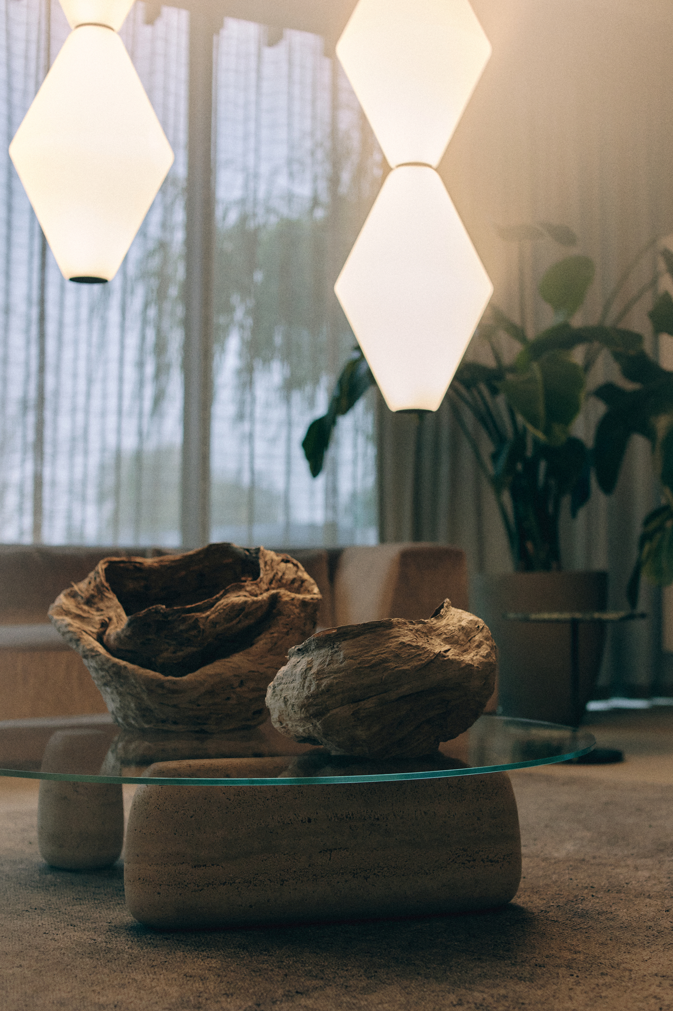Ciepłe refleksy szkła pobudzają wyobraźnię, tworząc zaskakujące kompozycje i sugestywnie zaznaczając swoją obecność w przestrzeni.