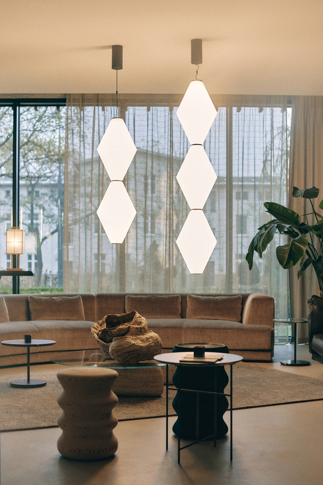 Ciepłe refleksy szkła pobudzają wyobraźnię, tworząc zaskakujące kompozycje i sugestywnie zaznaczając swoją obecność w przestrzeni.