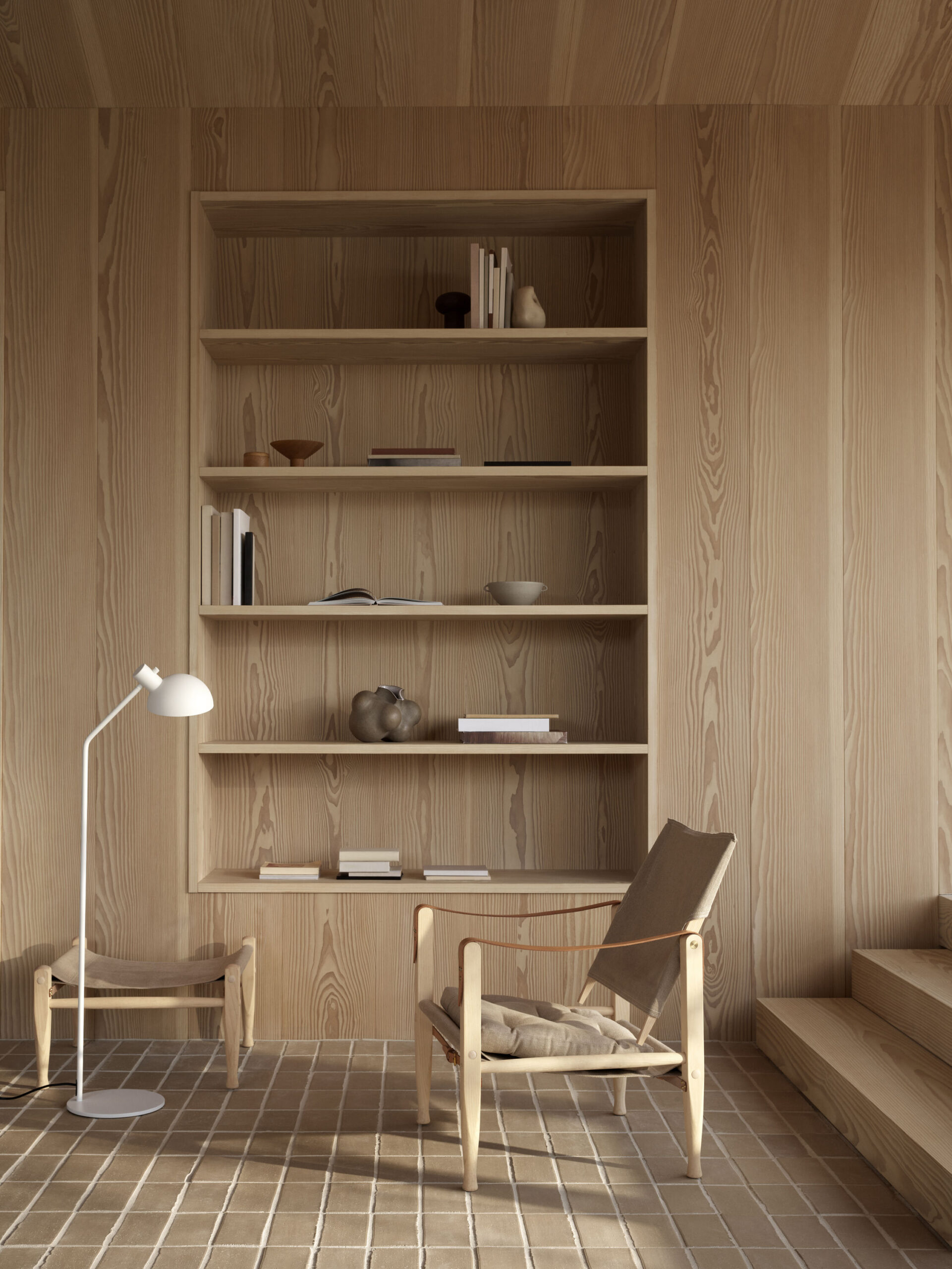 Stołek KK97170 Safari został zaprojektowany przez syna Kaare Klint, Esben Klint, po śmierci ojca. Można go łatwo złożyć bez użycia narzędzi; wykonano go tak, aby pasował do krzesła Safari Chair – jednego z pierwszych na świecie mebli przeznaczonych do samodzielnego montażu. Oferuje wygodne miejsce do oparcia stóp, a jednocześnie świetnie sprawdza się w stylowym, mobilnym stylu życia.