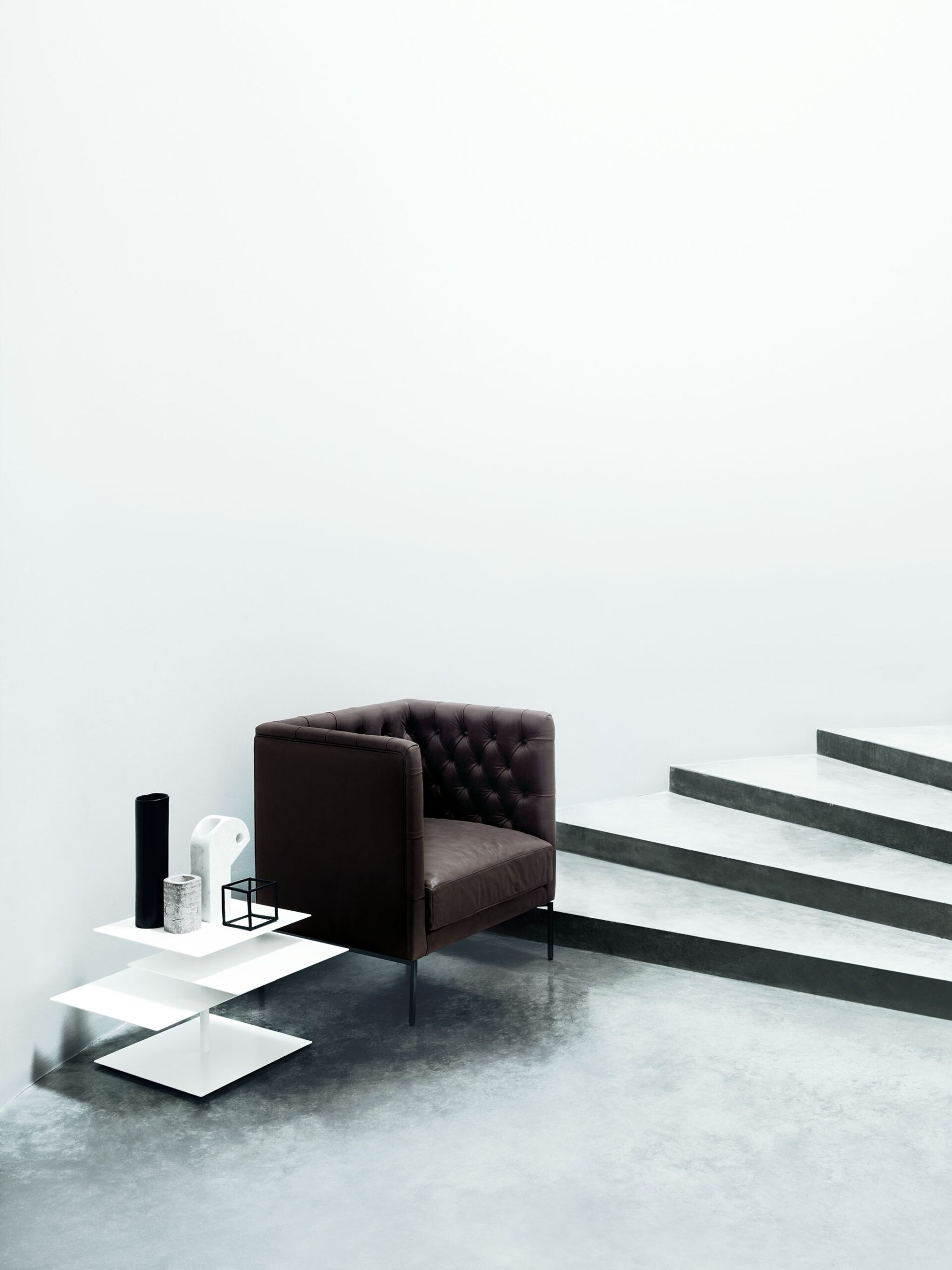 Fotel dostępny również w nowym wyglądzie z rattanu. Gęste sploty przypominające haft couture, wykwintna wstawka, która nadaje odrobinę kunsztu, aby umeblować najcenniejsze przestrzenie, zarówno w domu, jak i w pomieszczeniach zawodowych.