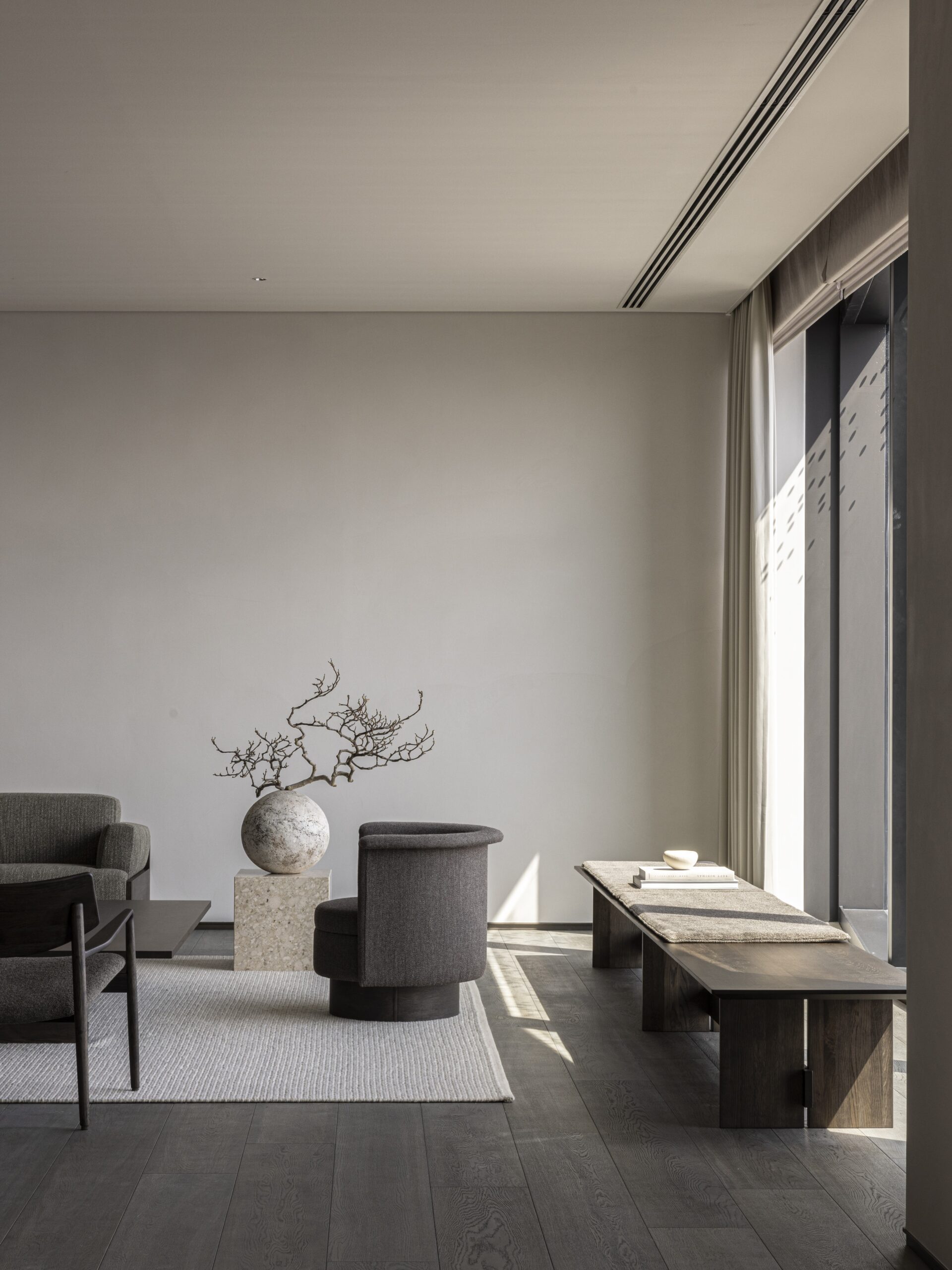 Fotel obrotowy N-SW01, zaprojektowany dla luksusowego hotelu BELLUSTAR TOKYO, A Pan Pacific Hotel, zlokalizowanego w ikonicznej dzielnicy Shinjuku w Tokio, emanuje minimalistycznym poczuciem luksusu. Starannie wykonana, kolista podstawa oraz wyrafinowana tapicerka przyciągają obietnicą wyjątkowego, otulającego podparcia i komfortu, jednocześnie zachowując silne poczucie prywatności. Obracający się wokół własnej osi fotel porusza się płynnie i po zakończeniu użytkowania samoczynnie powraca do swojej pierwotnej pozycji.