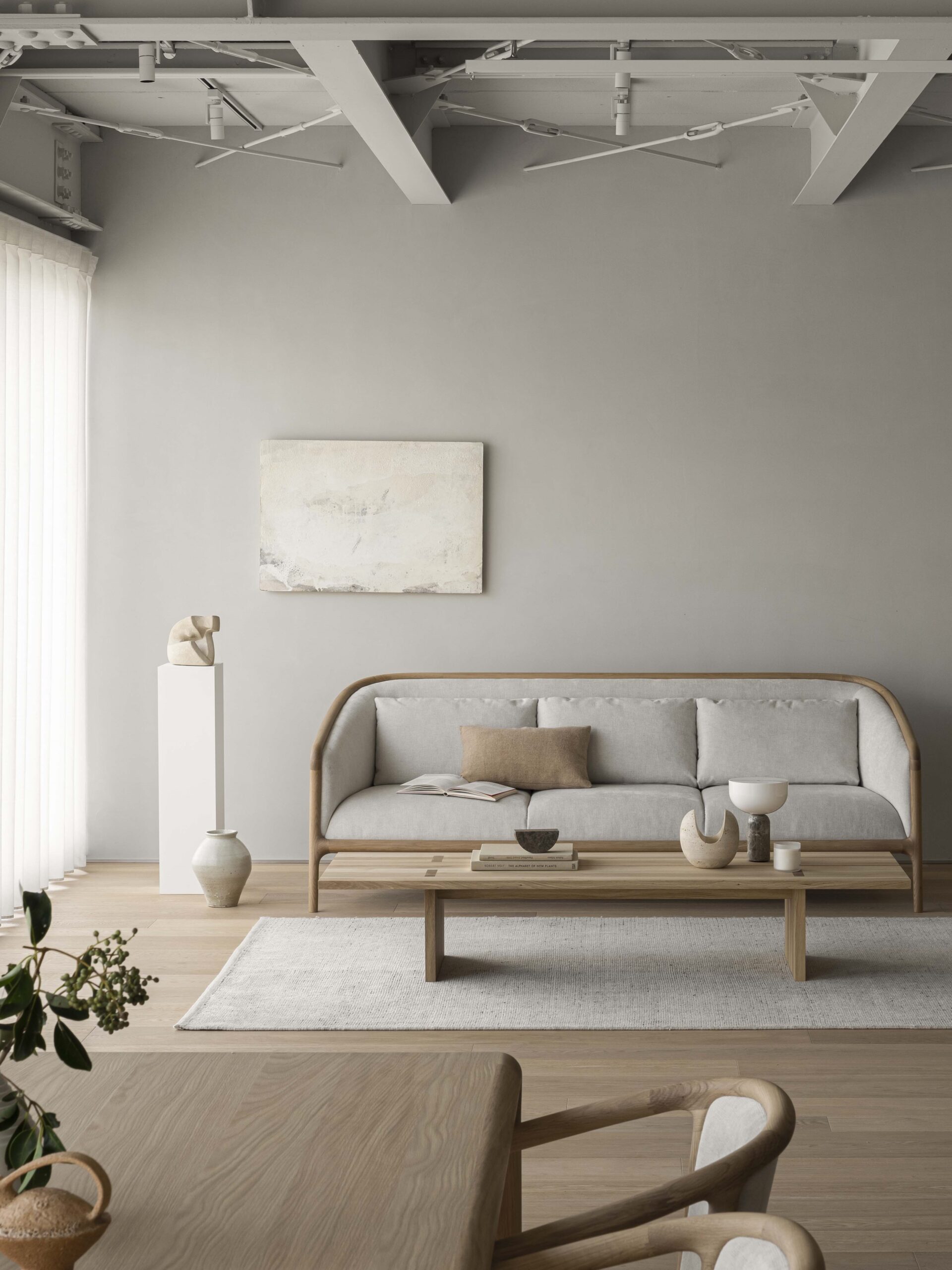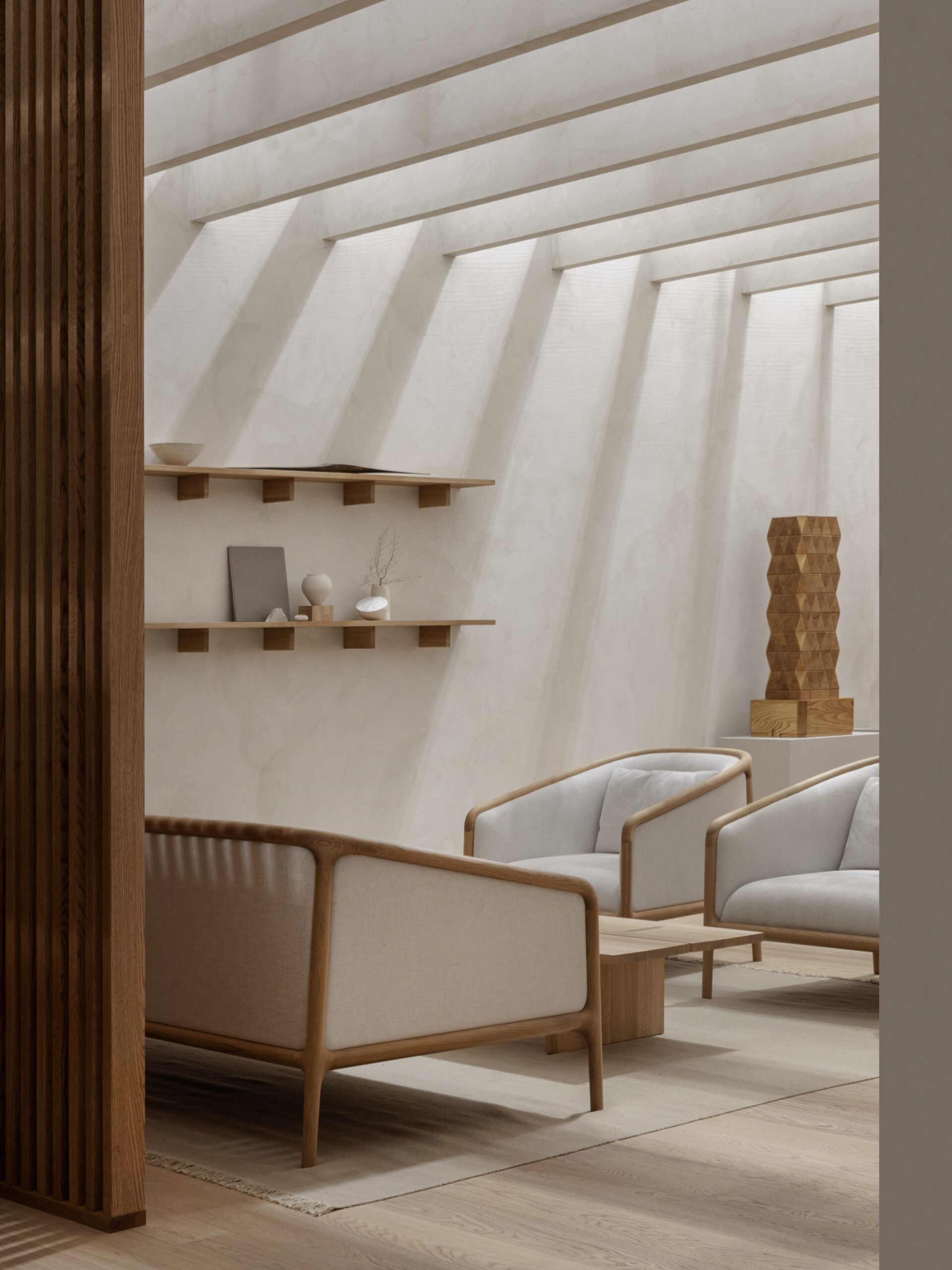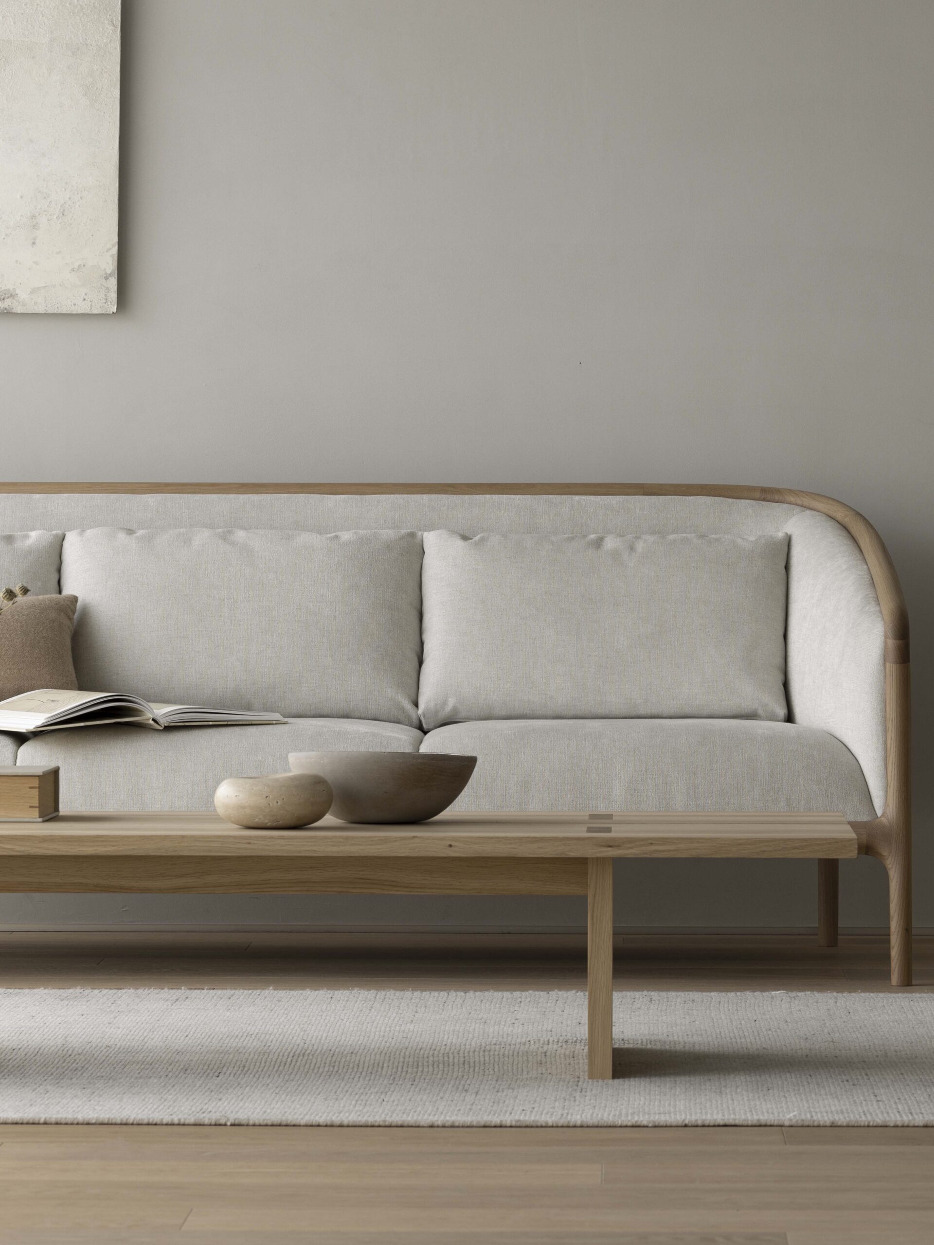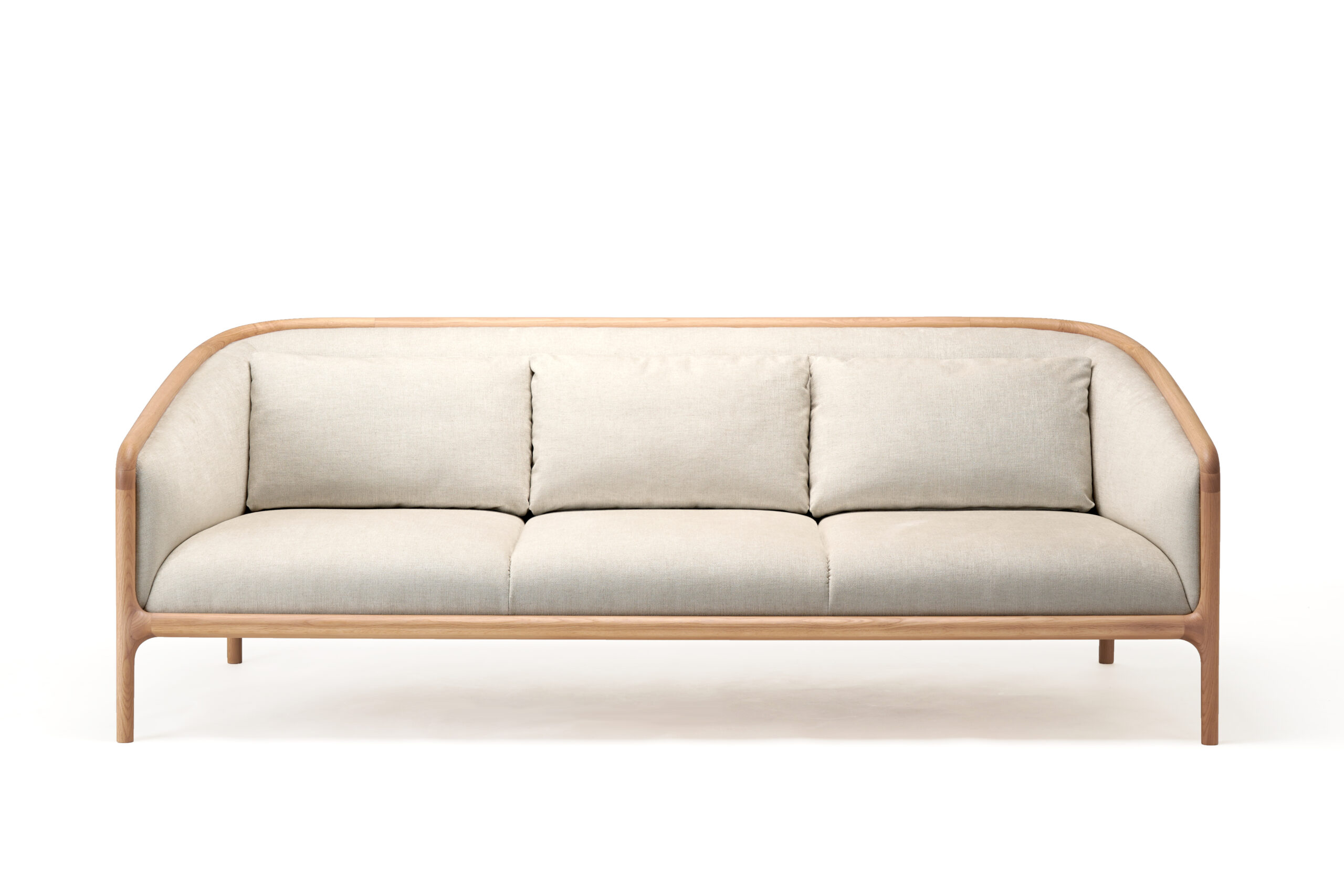 Charakterystyczna sylwetka sofy NF-S01 wywodzi się z modelu NF-LC01 | Lounge Chair. Dzięki głębszemu siedzisku oraz grubszemu oparciu sofa zyskuje jednak bardziej hojny i luksusowy charakter. Wyrazista drewniana rama łączy ją z kolekcją NF oraz podkreśla wyjątkowe rzemiosło marki Karimoku.
