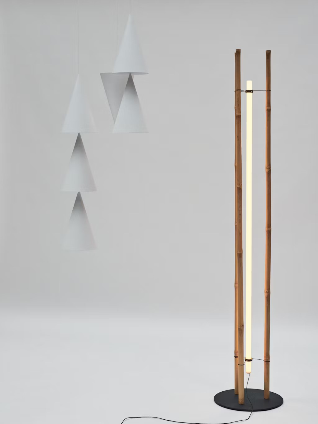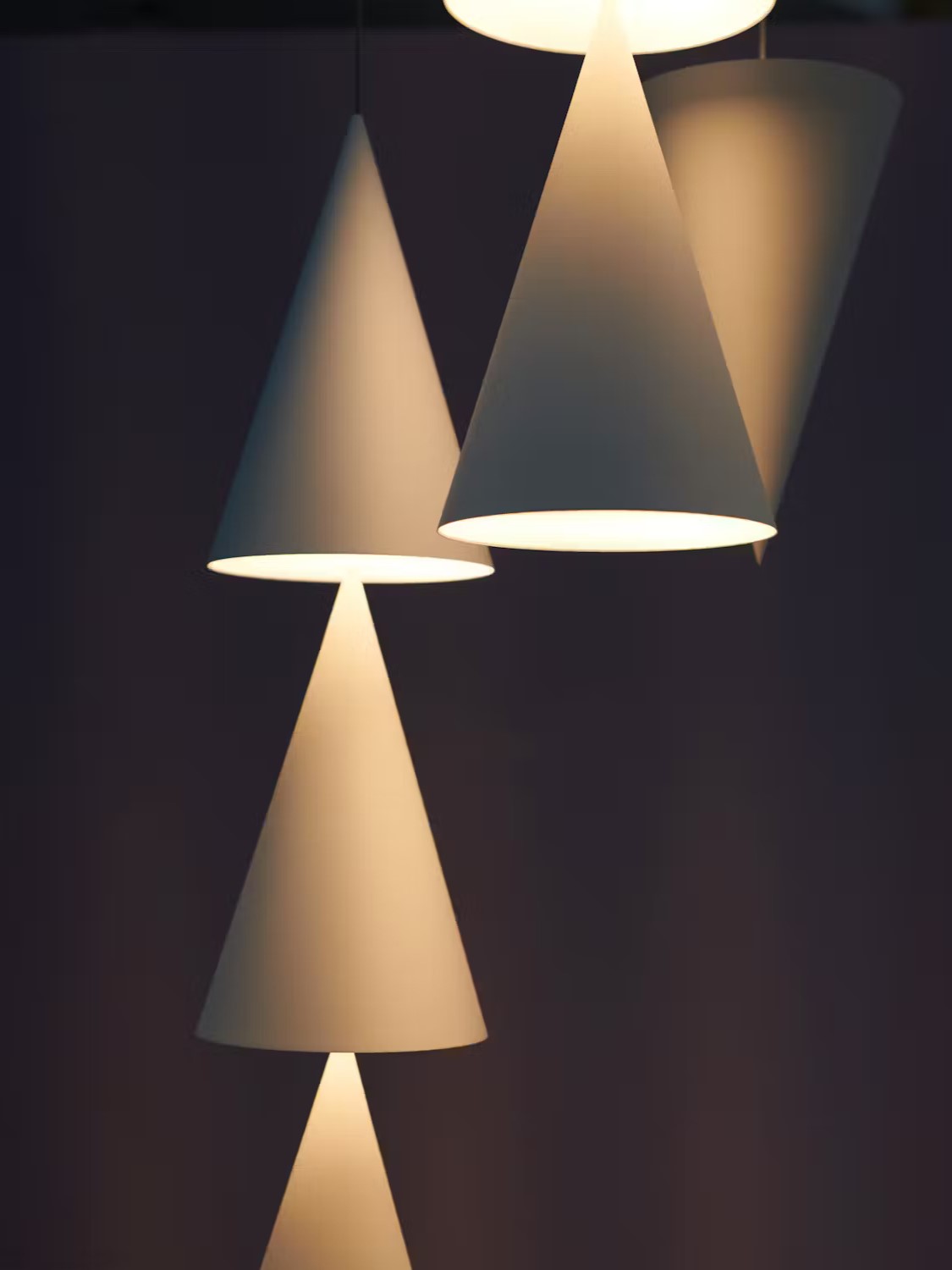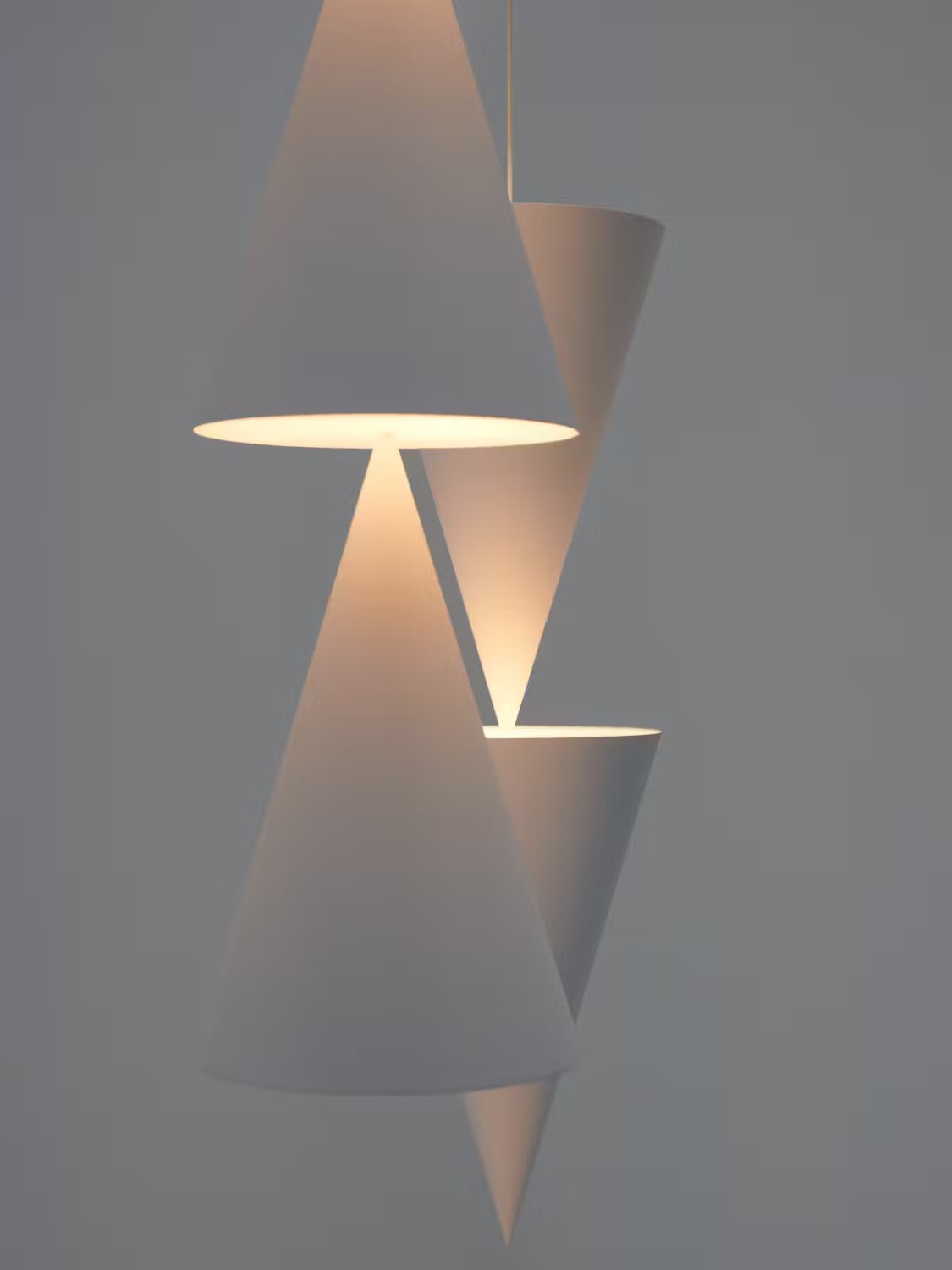 Peaks to rodzina lamp wiszących, składających się z szeregu wydłużonych stożków o różnych konfiguracjach. Stopniowe cieniowanie na zakrzywionej powierzchni każdego stożka jest równie charakterystyczne, co emitowane przez niego promienie światła. Lampy można przedstawić jako układ pojedynczy, podwójny lub potrójny, skierowany w górę lub w dół, w zależności od preferowanego kierunku padania światła. Identyczny, odwrócony stożek działa jak rozeta przymocowana do sufitu. Przy zgaszonym świetle formy wydają się bardzo schematyczne, jakby zaczerpnięte z geometrycznej martwej natury. Po włączeniu, cieniowanie zmienia się, gdy światło pada na zakrzywioną powierzchnię.