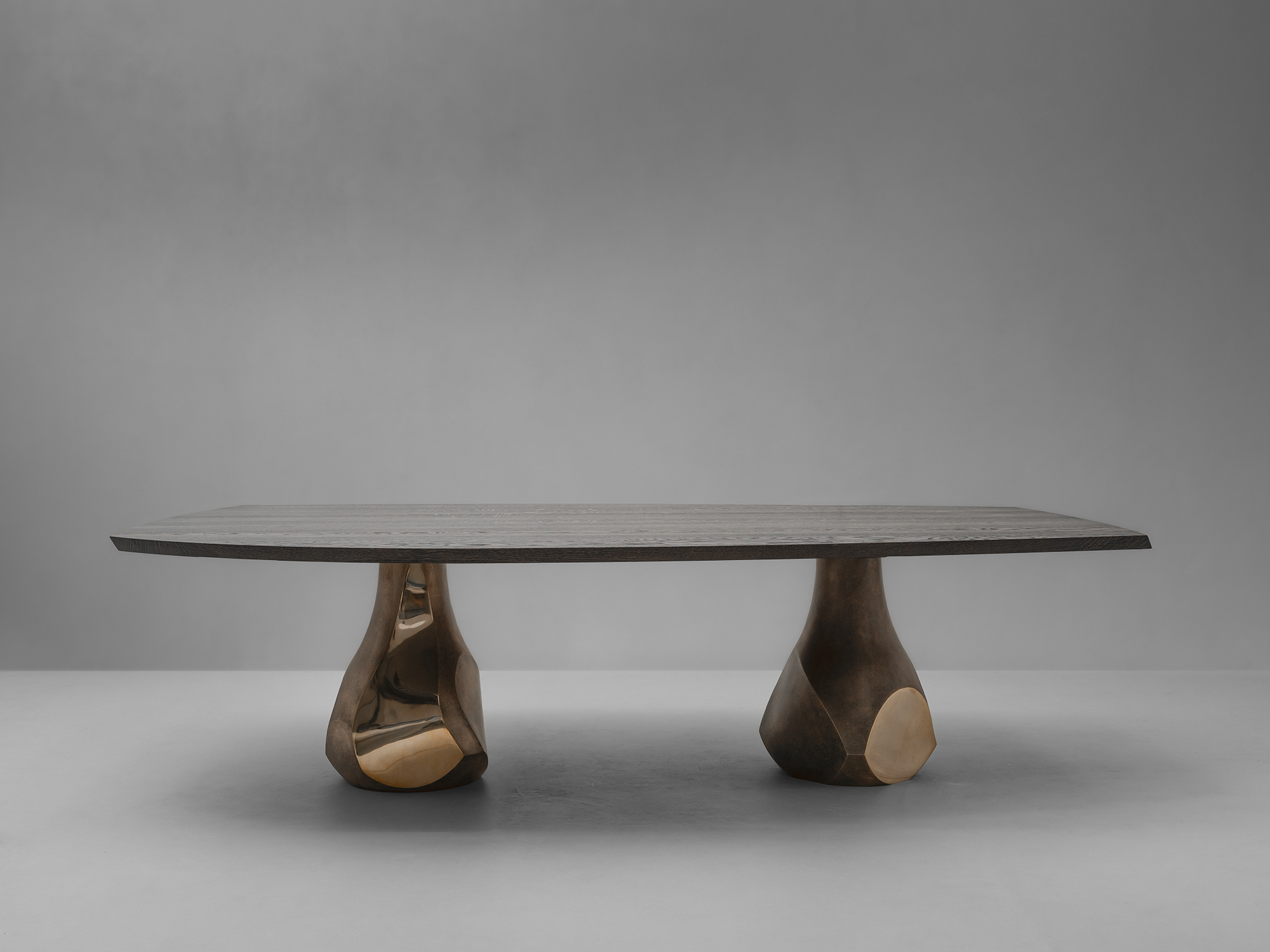 Stół z dwiema nogami z brązu: