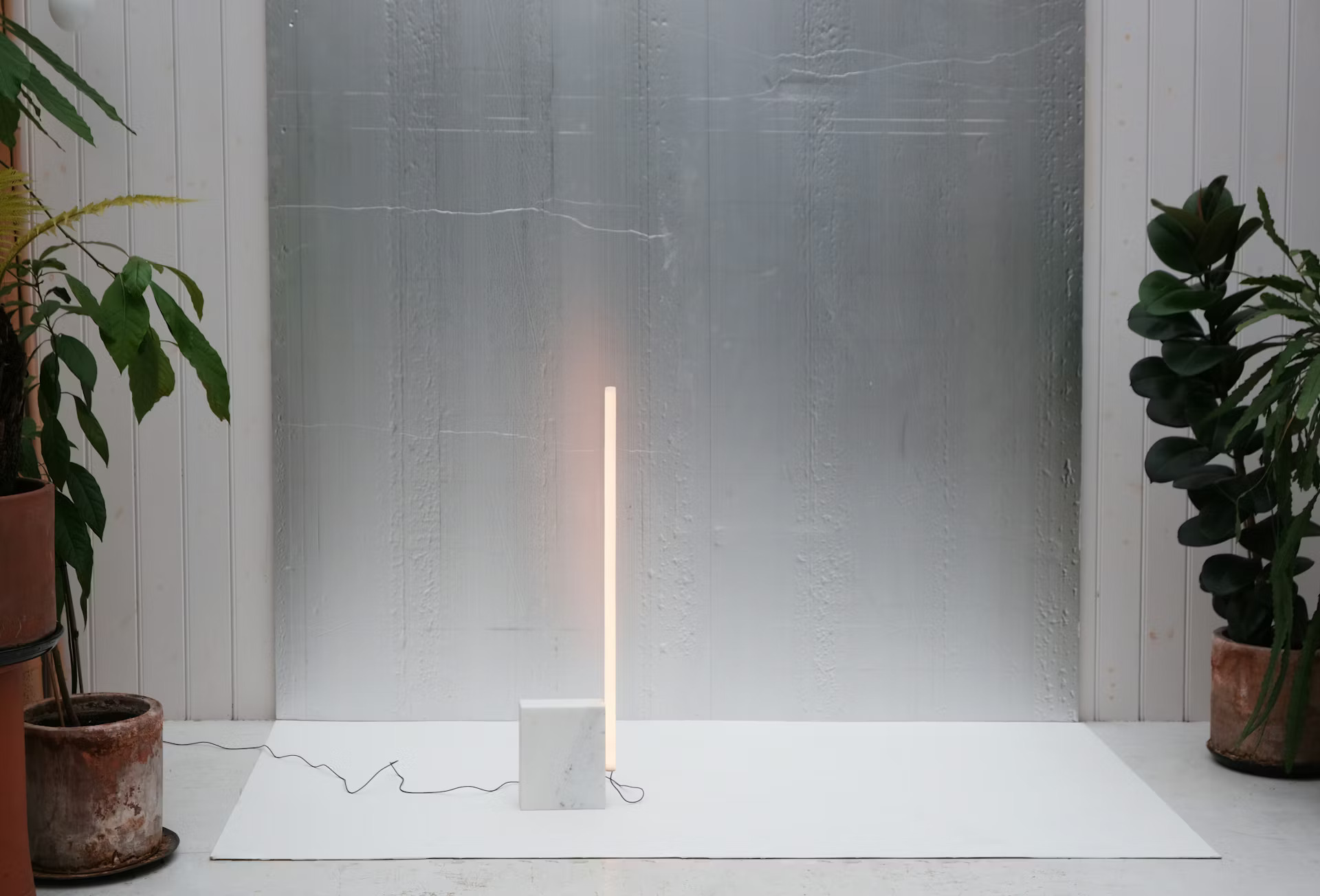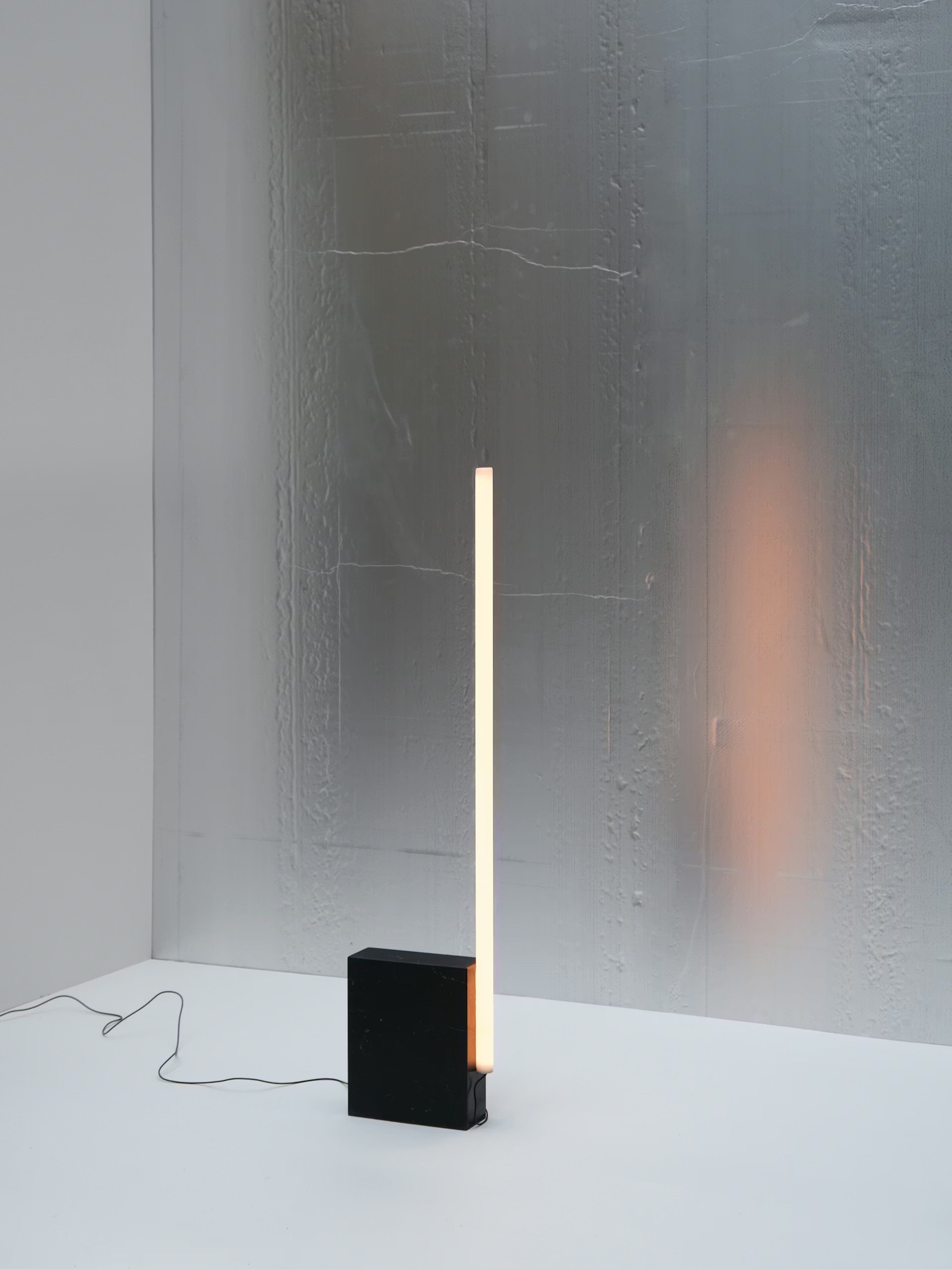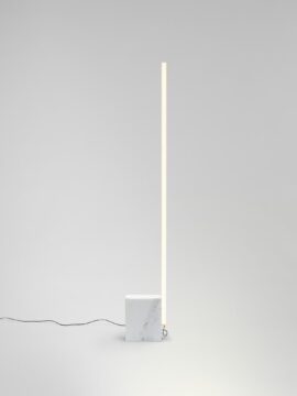 Zaprojektowana w 2022 roku rodzina lamp podłogowych Relay autorstwa Michaela Anastassiadesa oferuje wszechstronne i minimalistyczne rozwiązanie oświetleniowe. Smukła, pionowa, opalizująca szklana tuba łączy się z marmurową podstawą niewidocznym magnetycznym połączeniem, tworząc wyrafinowaną i geometryczną estetykę.