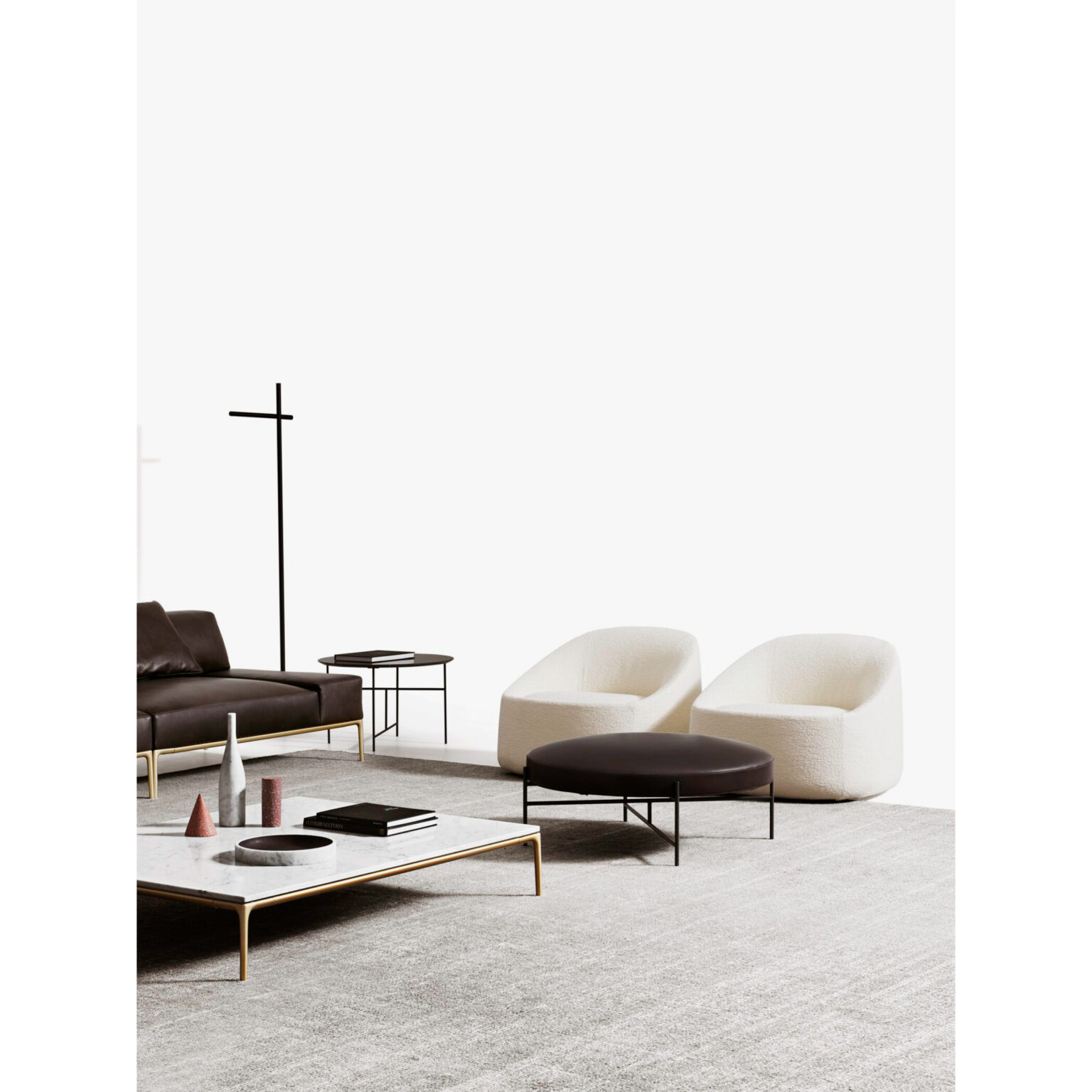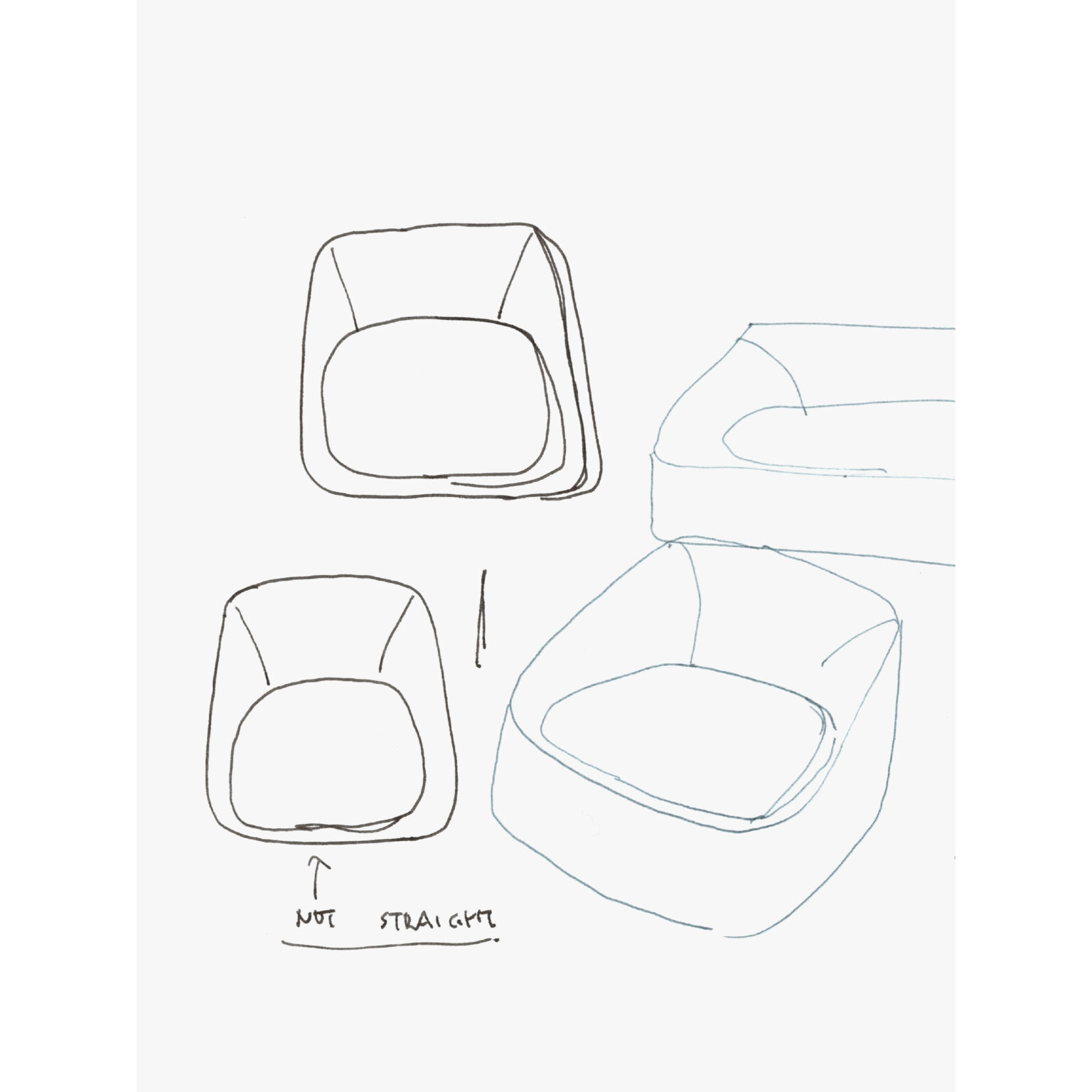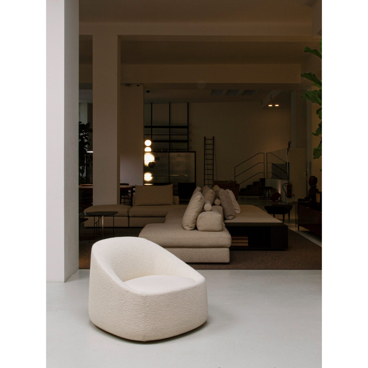 Niekonwencjonalny i przytulny nowy fotel projektanta Keiji Takeuchi o zaokrągloych liniach podkreślonych podwójnymi szwami biegnącymi wzdłuż oparcia. Występuje w wersji obrotowej lub stałej, tapicerowanej tkaniną lub skórą. Dobrze wygląda w pojedynkę, a jeszcze lepiej jako para wyznaczająca kącik salonu do siedzenia i rozmów, wypicia filiżanki kawy lub czytania gazety.