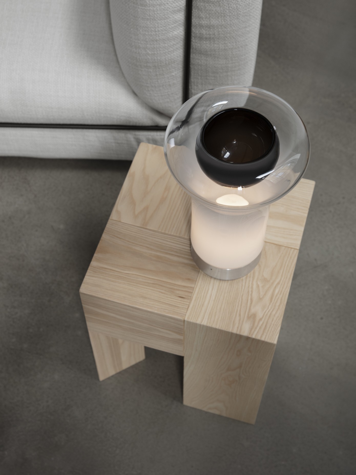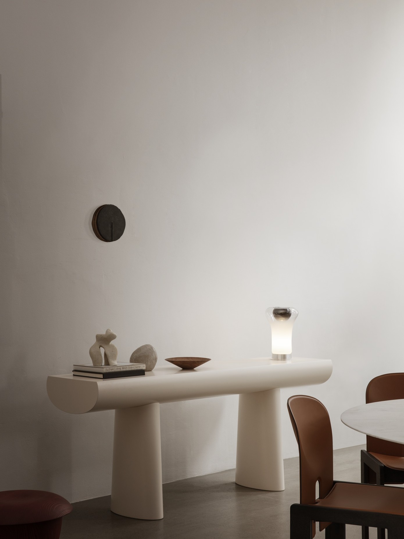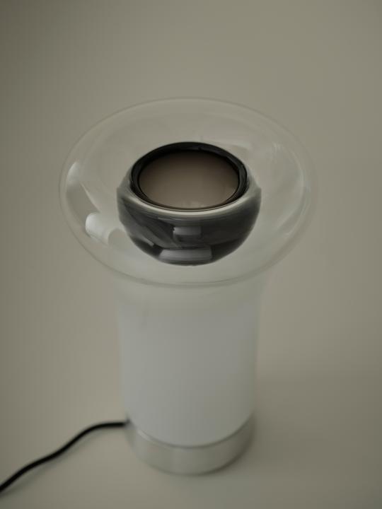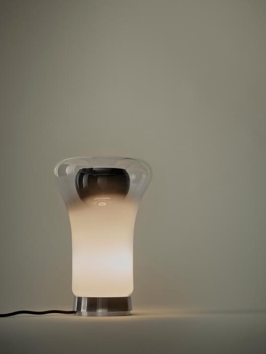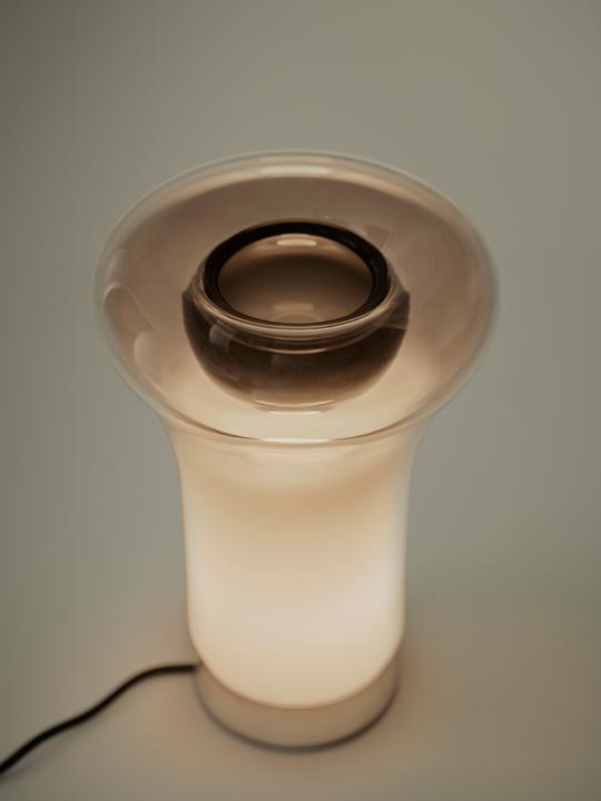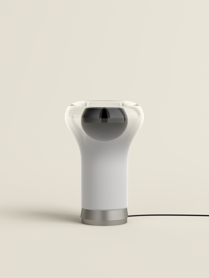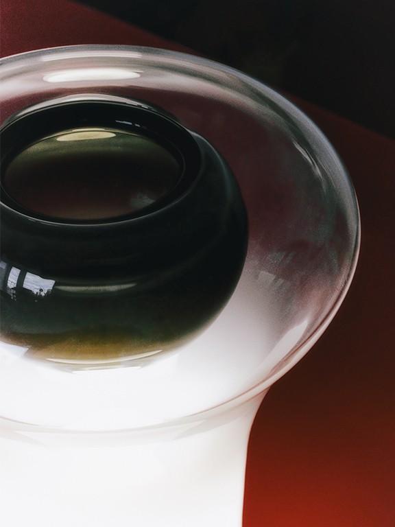 Białe szkło w dolnej części elegancko ukrywa źródło światła, a gdy kształt zaczyna się formować, białe szkło staje się przezroczyste, otwierając drogę światłu. Rzeźbiarski charakter lampy Saffo sprawia, że ​​jest ona spektakularnym obiektem designerskim, niezależnie od tego, czy jest włączona, czy wyłączona.