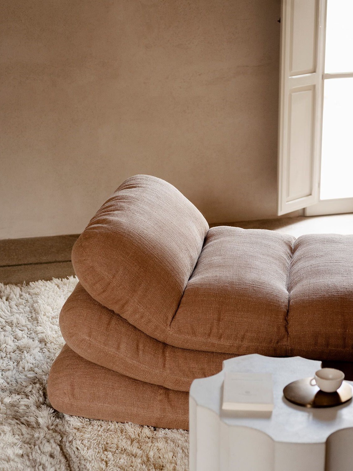 Solar to wygodna, wyściełana leżanka, która przypomina niemal stos poduszek: w rzeczywistości łączy w sobie rzeźbiarskie kształty i miękkość.