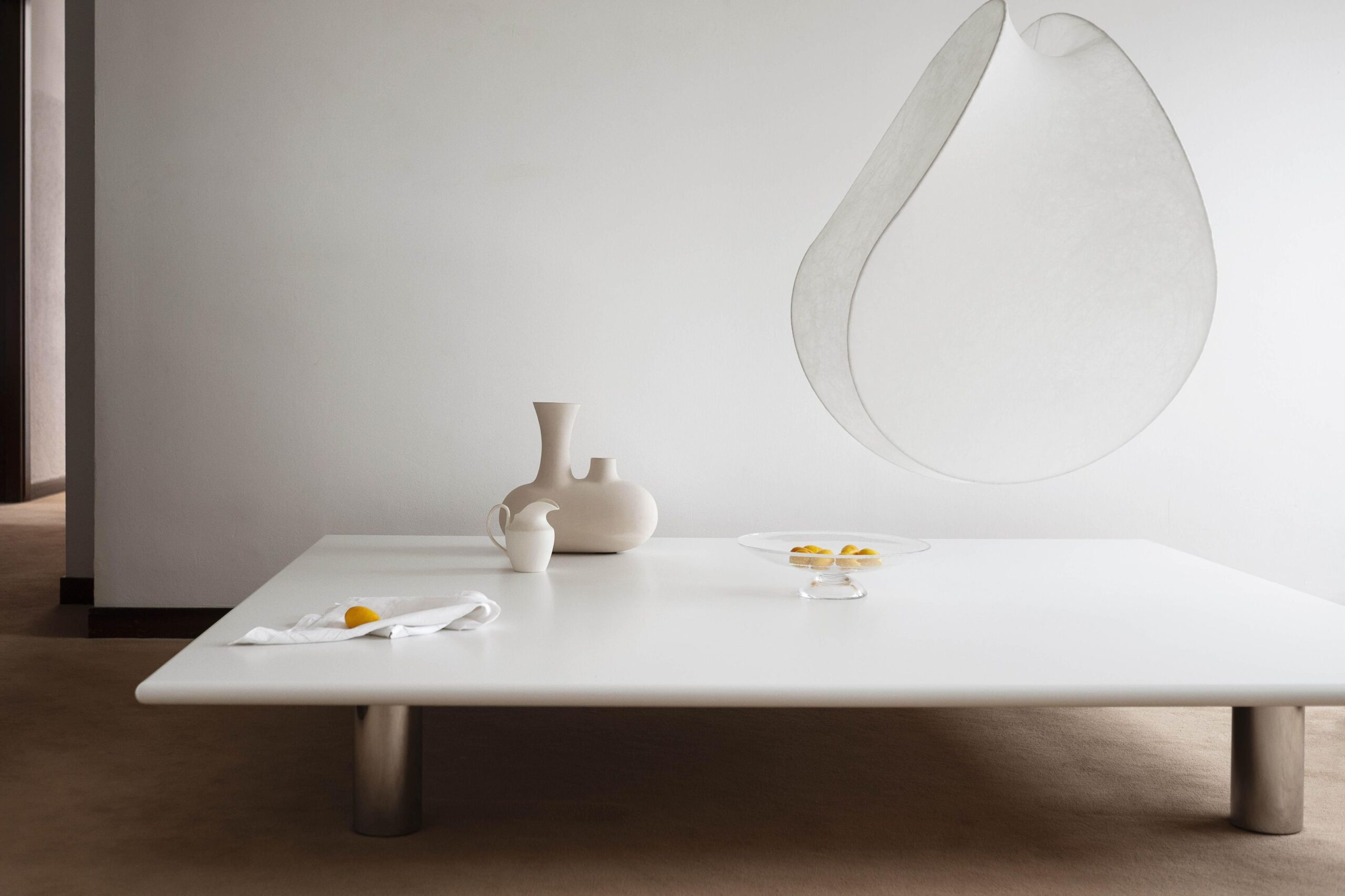Zaprojektowany w latach 70. XX wieku przez Cini Boeri, Tako „nie jest meblem, ale powierzchnią użytkową”, odzwierciedlając ideę elastycznego, łatwego w rekonfiguracji designu, który wzbogaca sposób, w jaki żyjemy w naszych przestrzeniach. Cztery solidne chromowane rury podtrzymują blat, który jest wystarczająco duży, aby pomieścić drobne domowe rytuały, tak bliskie projektantowi — od miejsca odpoczynku dla przedmiotów codziennego użytku po przedłużenie sofy, na którym można odpocząć stopami. Niewielka wysokość, inspirowana orientalną towarzyskością, sprzyja rozmowie i interakcjom społecznym.