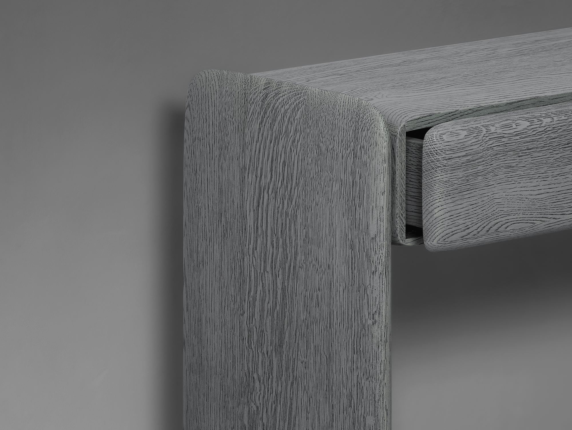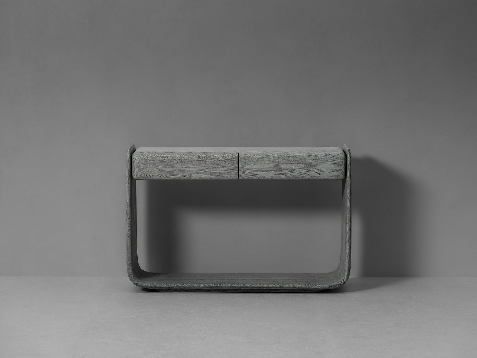 TENERE Console with drawers to smukła konsolka z dwoma szufladkami z podstawą, która wygina się ku górze na obu końcach, tworząc nogi, które płynnie podtrzymują blat. Perfekcyjnie wyrzeźbiona. Kształt ucieleśnia płynne połączenie solidności i wdzięku, a unosząca się sylwetka nawiązuje do spokojnej przestrzeni pustyni, od której pochodzi nazwa kolekcji.
