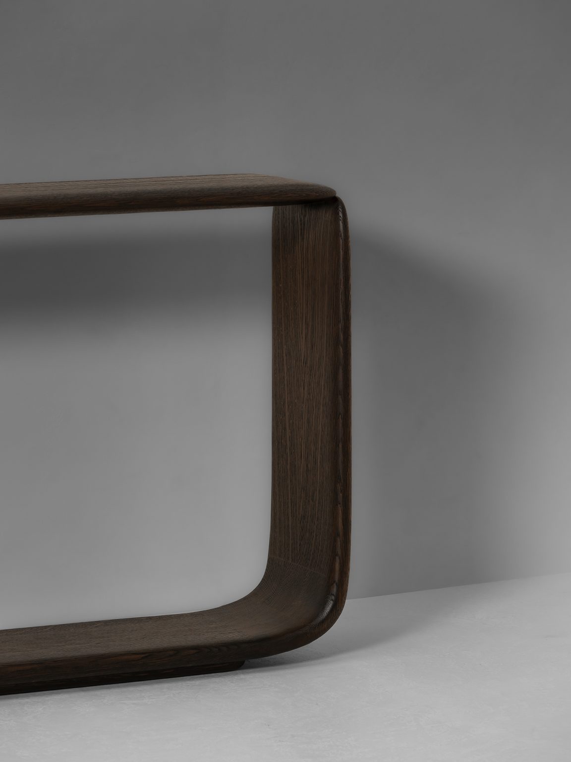 TENERE Console to smukła konsolka z podstawą, która wygina się ku górze na obu końcach, tworząc nogi, które płynnie podtrzymują blat. Perfekcyjnie wyrzeźbiona. Kształt ucieleśnia płynne połączenie solidności i wdzięku, a unosząca się sylwetka nawiązuje do spokojnej przestrzeni pustyni, od której pochodzi nazwa kolekcji.