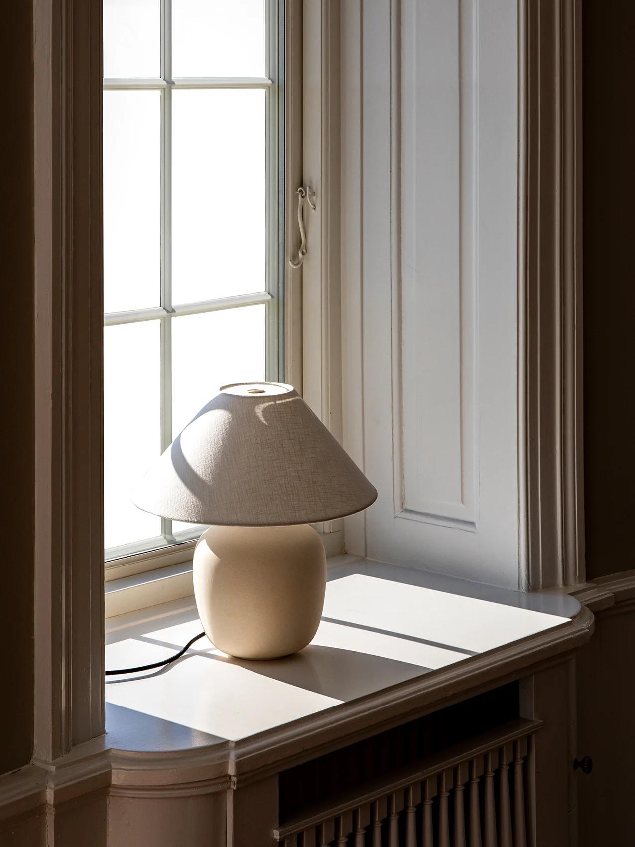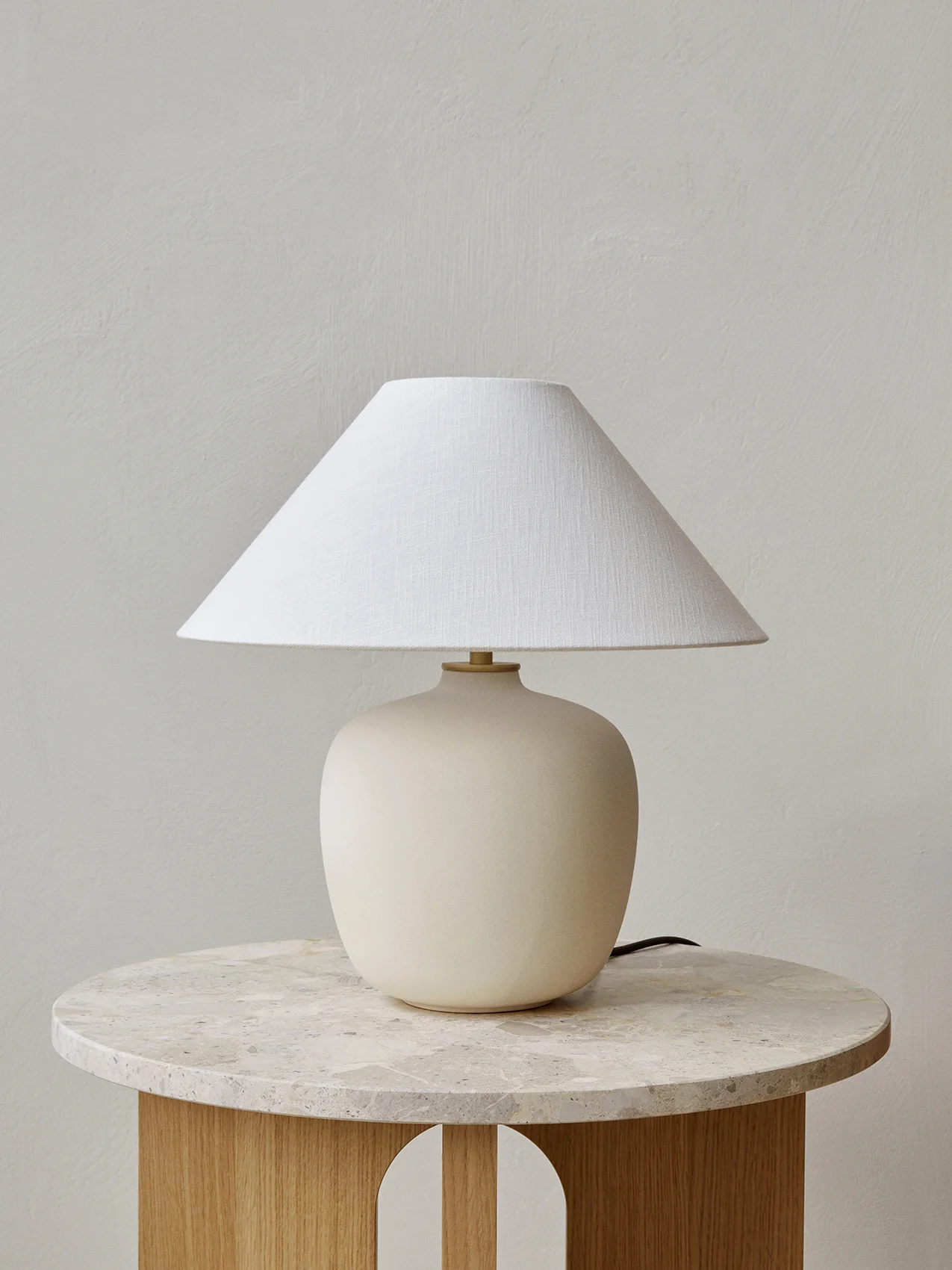 Lampa stołowa Torso, zaprojektowana została przez Krøyer-Sætter-Larsen dla MENU, to kontrast między nieszkliwioną, surową ceramiką i przewiewnym lnem. Delikatnie zaokrąglona, subtelna, rzeźbiarska podstawa ma ponadczasowy wygląd, który doskonale wpasuje się do każdego otoczenia. Dotykowy klosz rozprasza światło, tworząc natychmiastową atmosferę, a mosiężny ściemniacz dotykowy pozwala na indywidualne sterowanie.
