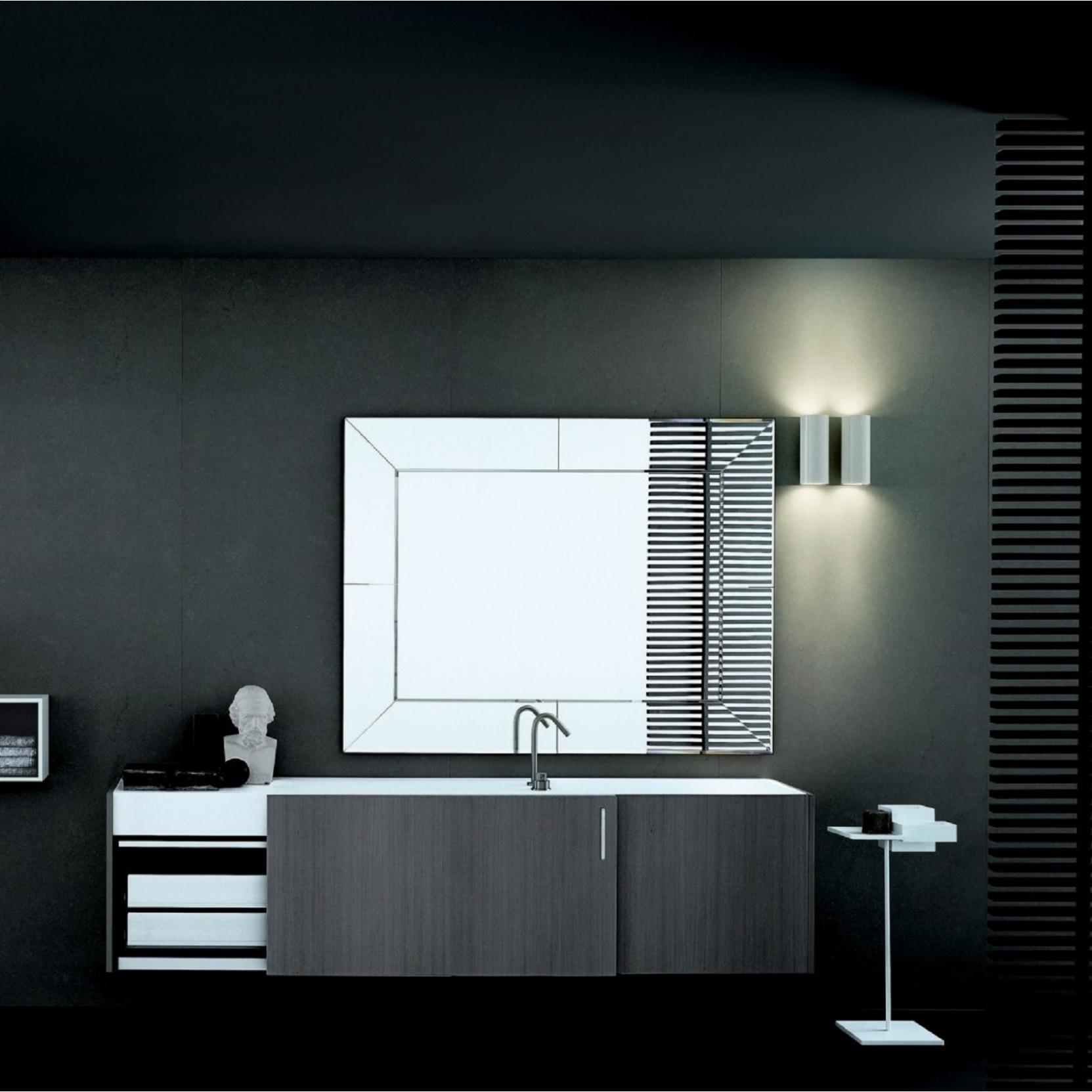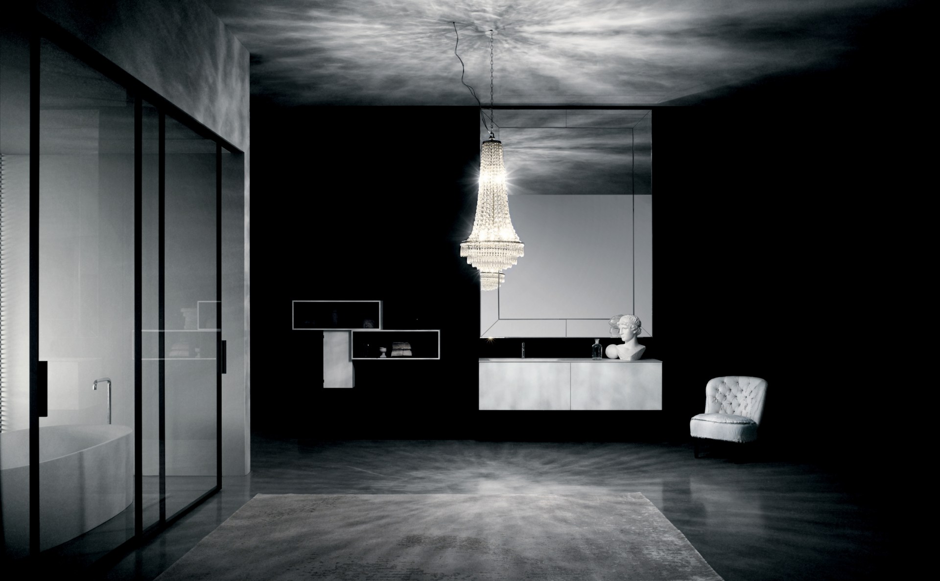 Veneziana to seria luster charakteryzująca się wewnętrzną ramą z fazowanego lustra z dodatkowymi podziałami. Całość kompozycji zamknięta jest w czarnej ramie z anodowanego aluminium. Kolekcja ta podzielona jest na 3 rodzaje – Typ A kwadrat / prostokąt, Typ B kwadrat / prostokąt oraz okrągłe o jednym wymiarze. Lustra z typu A i B wykonywane są na zamówienie pod wymiar, ważne aby zamawiany format mieścił się w wyznaczonym przedziale wymiarów.