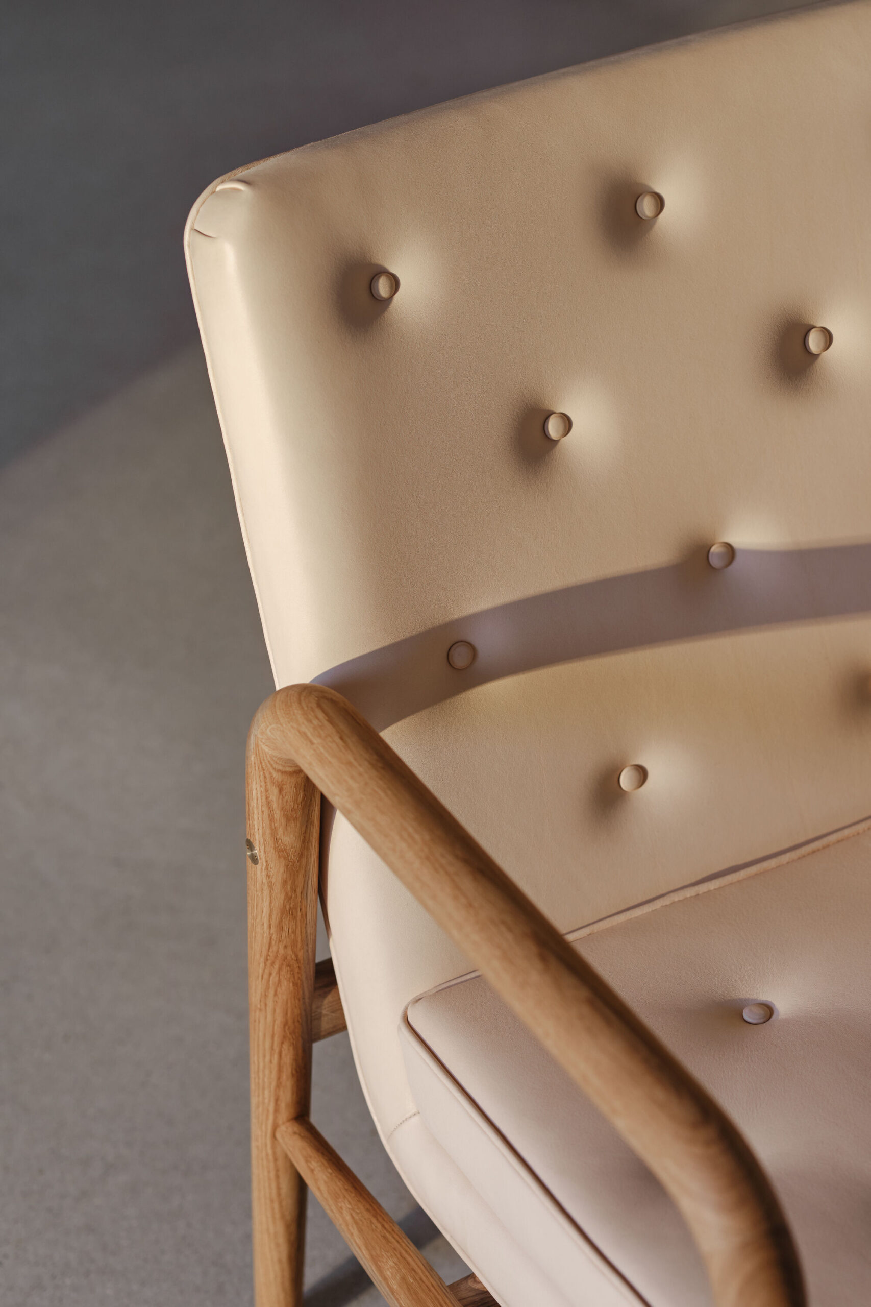 Foyer Lounge Chair, odtworzony w ścisłej współpracy z Vilhelm Lauritzen Architects, jest jednym z serii trzech projektów, które Vilhelm Lauritzen stworzył na zamówienie dla Radiohuset w Kopenhadze. Solidna dębowa rama, tapicerowane siedzisko i pochylone oparcie – wszystko to tworzy unikatową formę krzesła VLA76 Foyer Lounge Chair.